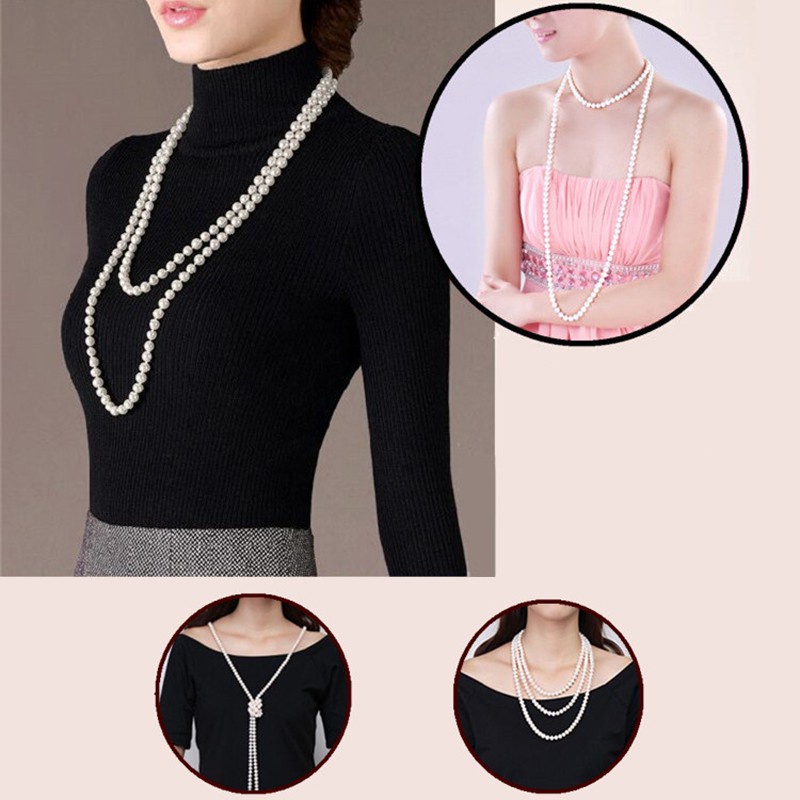 150cm Long Imitation Pearl Necklace Long Chain Sweater Chain Kalung Necklace สร้อยพระ
