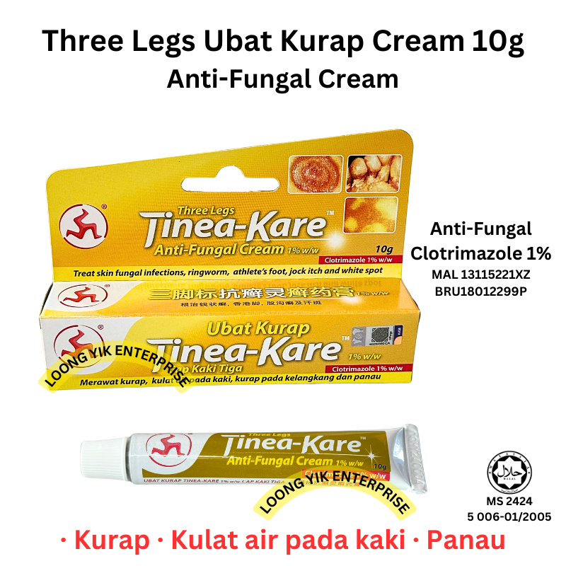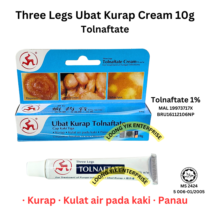 Three Legs Ubat Kurap Cream 10g Tolnaftate / Anti-Fungal Cream 藓药膏 Cap Kaki Tiga