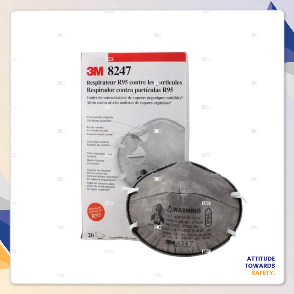 (20 Pcs) 3M 8247 R95 Particulate Respirator