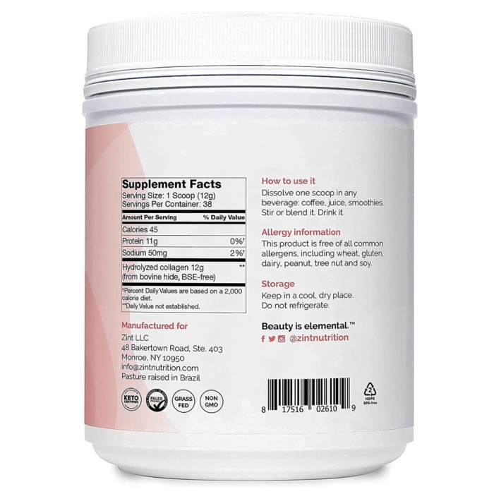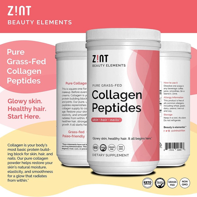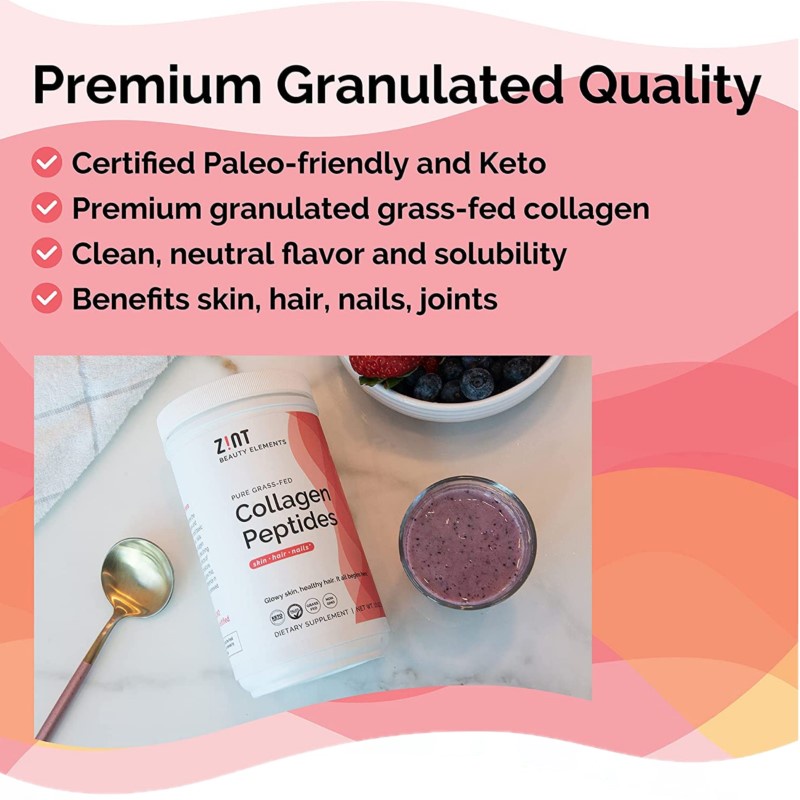 Zint Grass Fed Collagen Peptides Powder, 454g, Granulated Collagen Hydrolysate for Enhanced Absorption