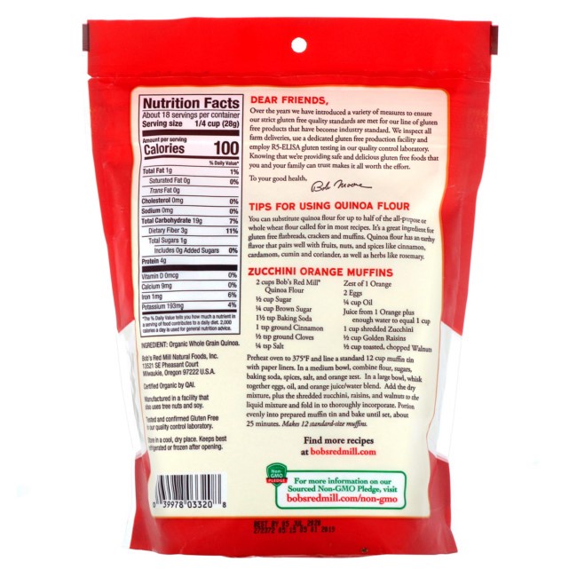Bob's Red Mill, Organic, Whole Grain Quinoa Flour, 18 oz (510 g)
