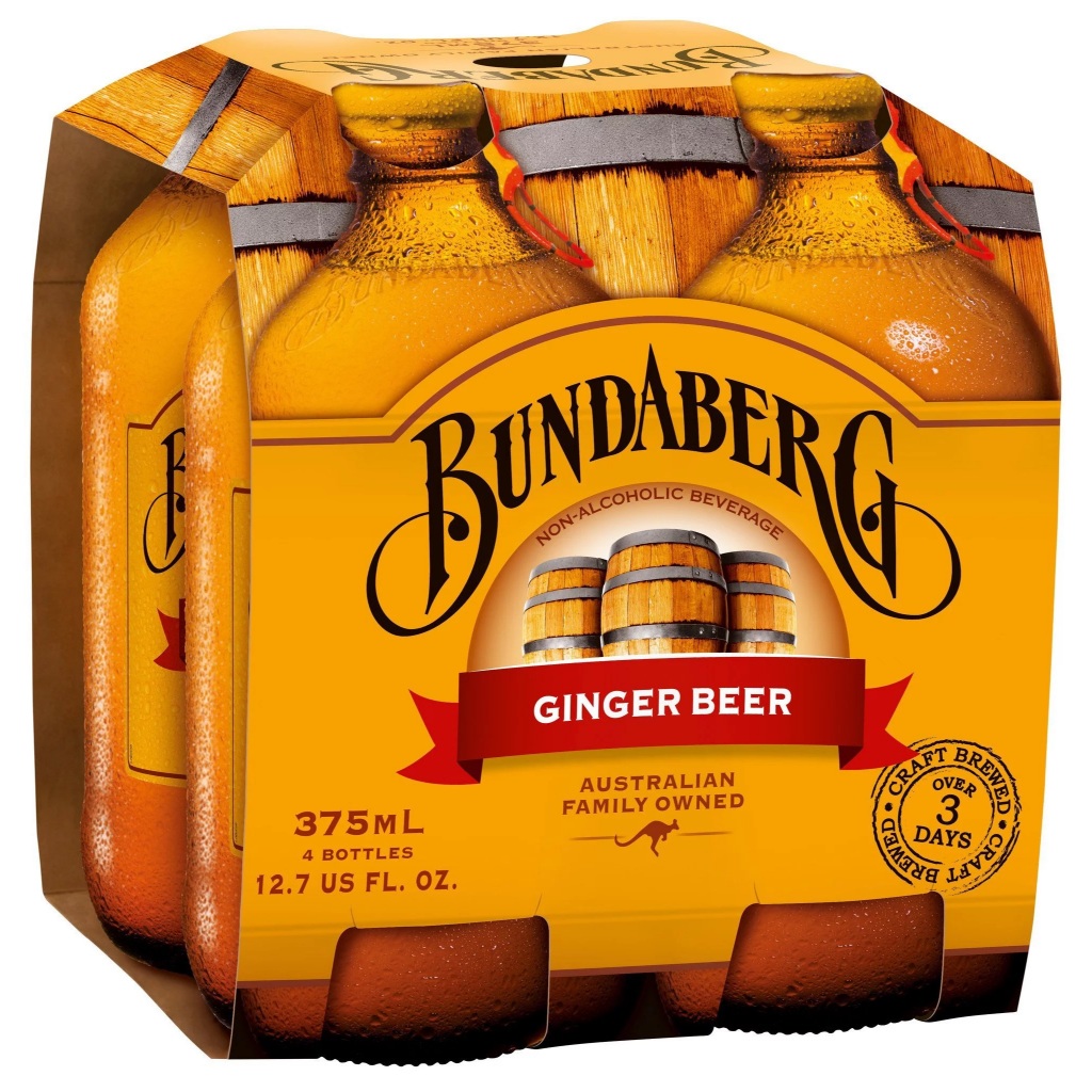 Bundaberg Ginger Beer Sparkling Drink (Non-Alcoholic Beverage From Australia) 4 x 375ml