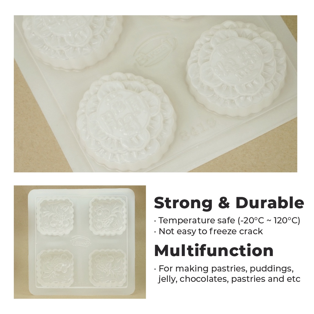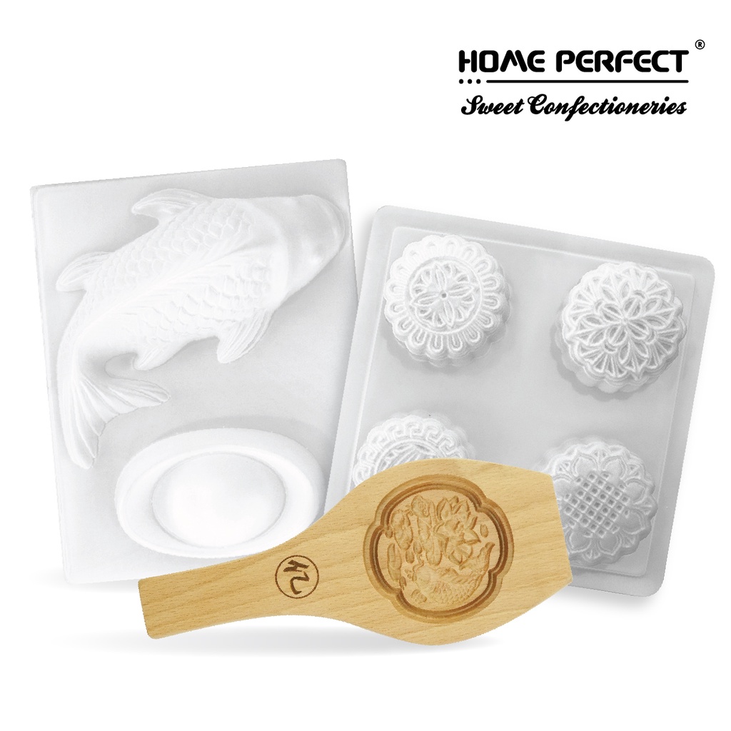 HOME PERFECT 4/8Cavities Gold Flower/Lotus/Rose/Gold Fish/Full Moon Mooncake Jelly Mould,金花,金鱼,花好月圆,年年有余,福到財到,月餅,YT-055