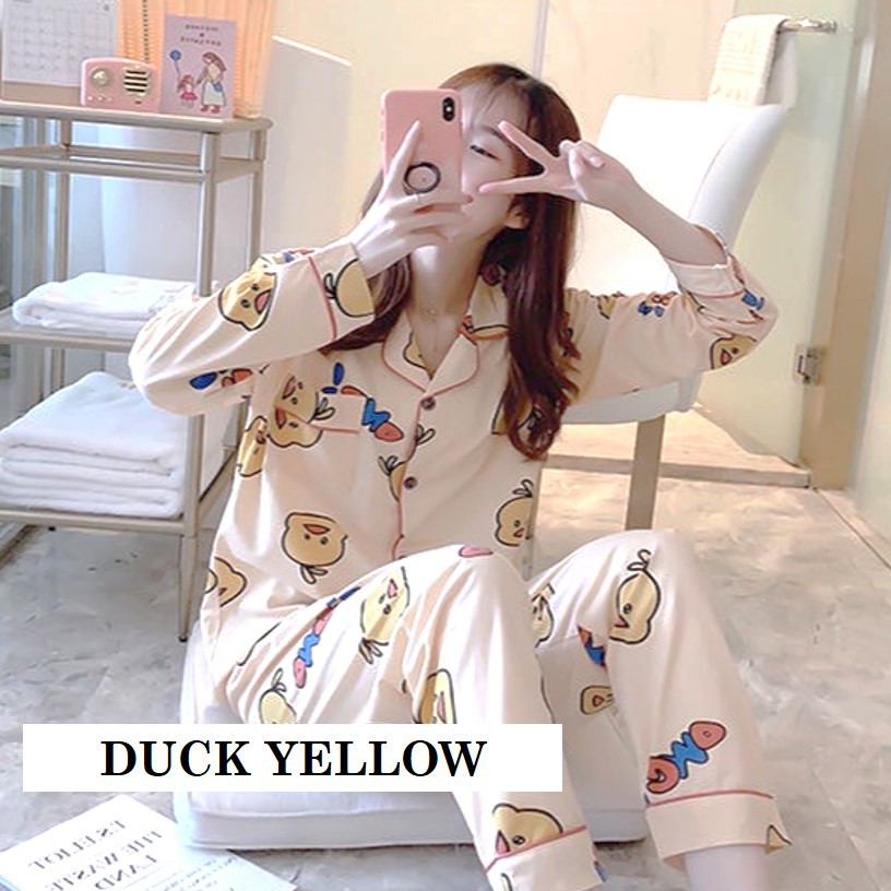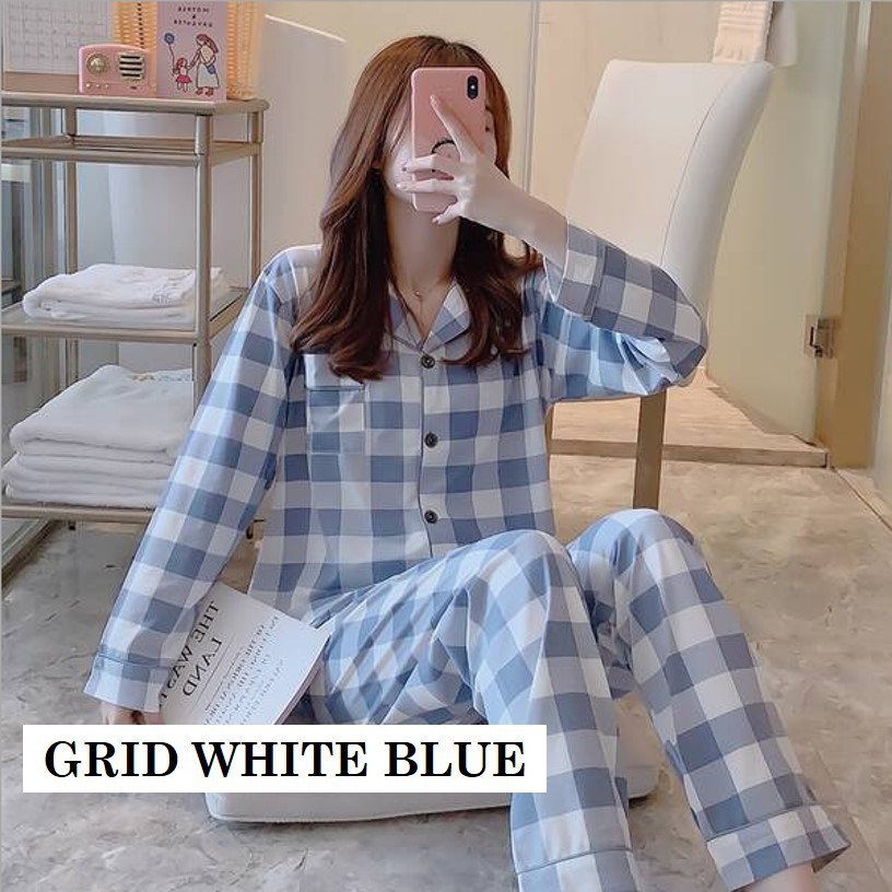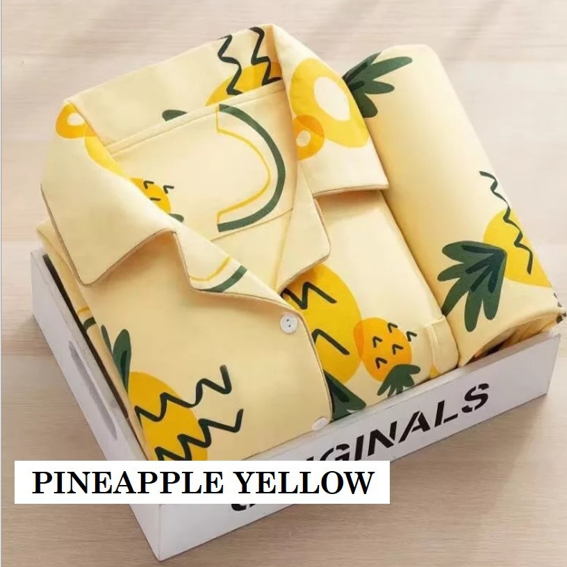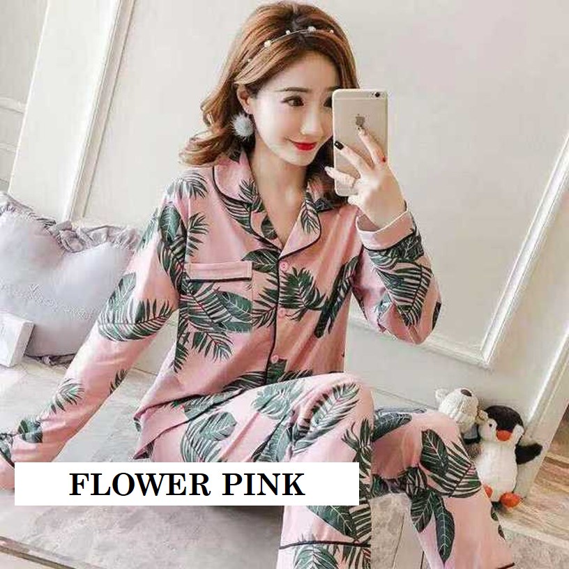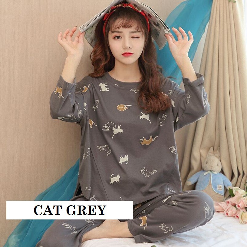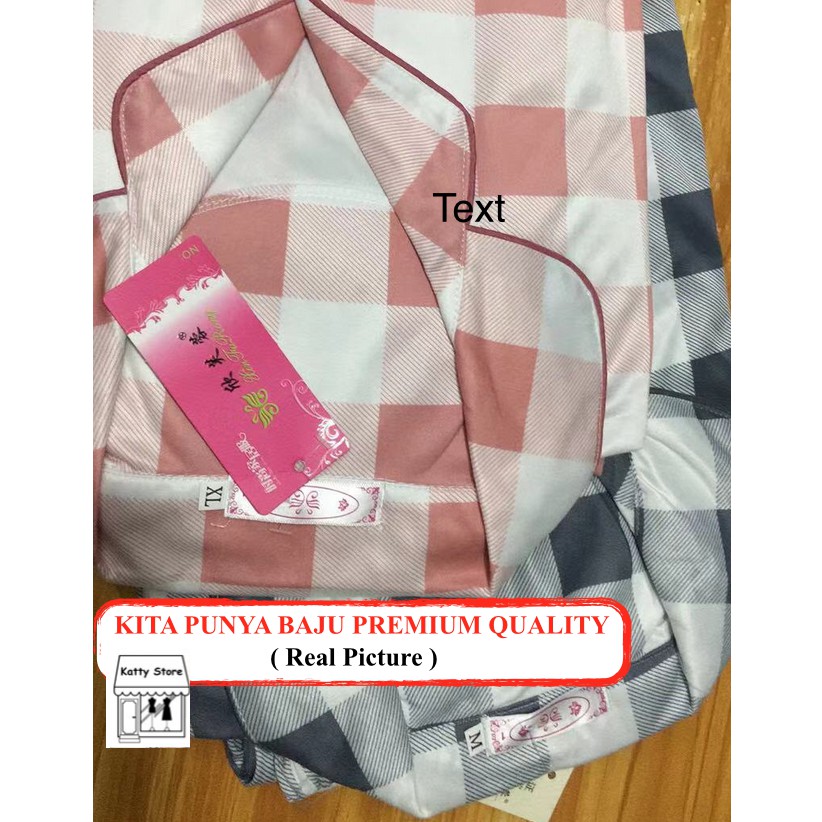 《SHIP IN 1 DAY》M - 3XL Plus Size Cotton Polyster Pyjamas Fabric Long Sleeve Pants Loose Sleepwear Nightwear Baju Tidur