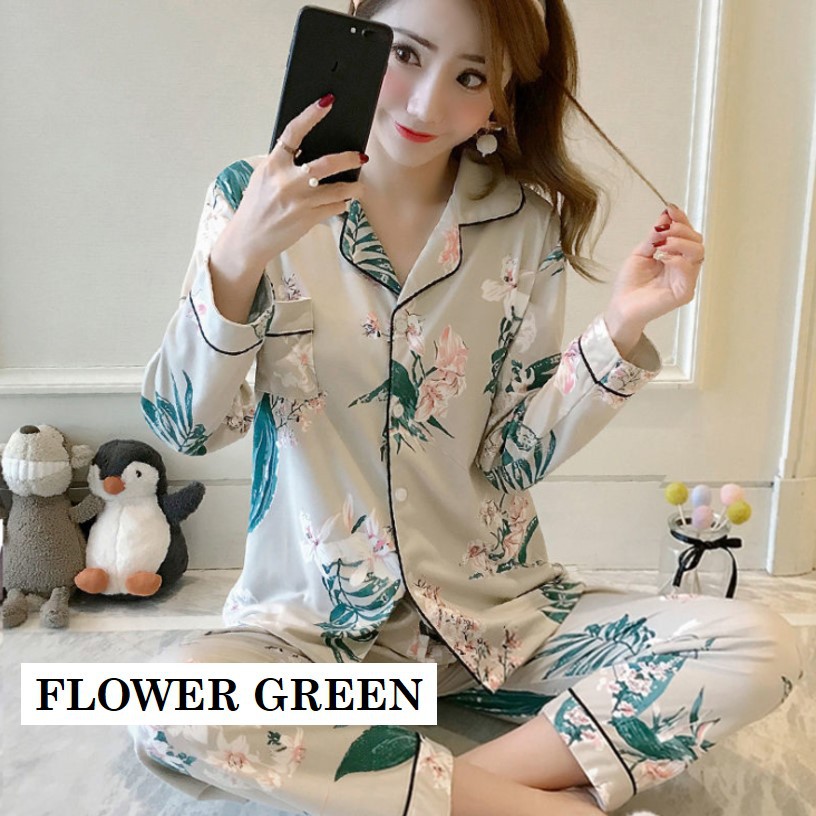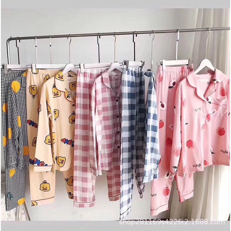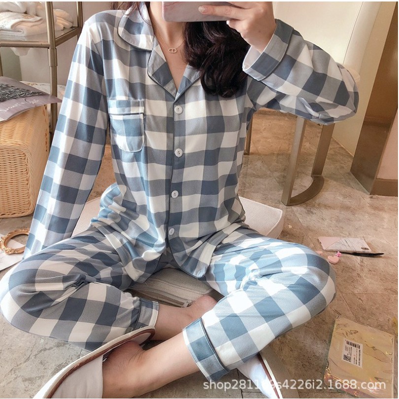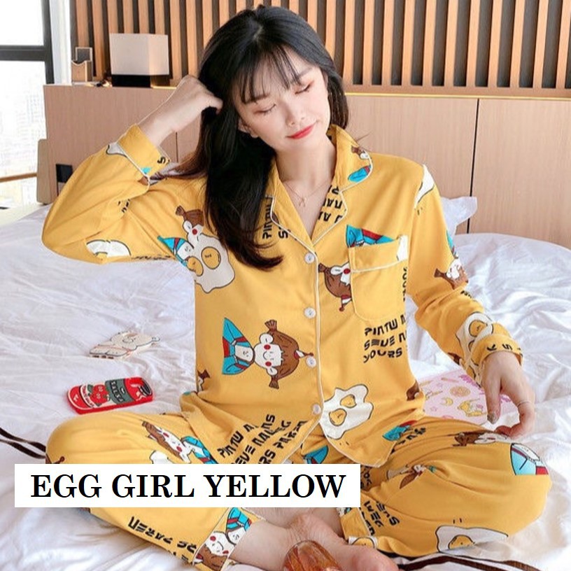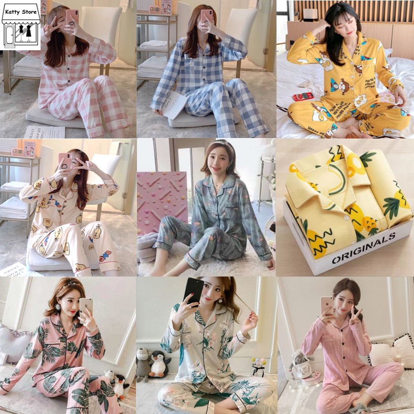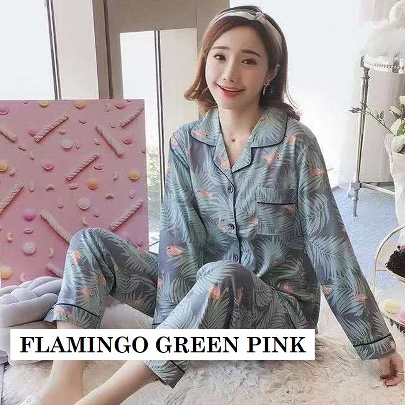 《SHIP IN 1 DAY》M - 3XL Plus Size Cotton Polyster Pyjamas Fabric Long Sleeve Pants Loose Sleepwear Nightwear Baju Tidur
