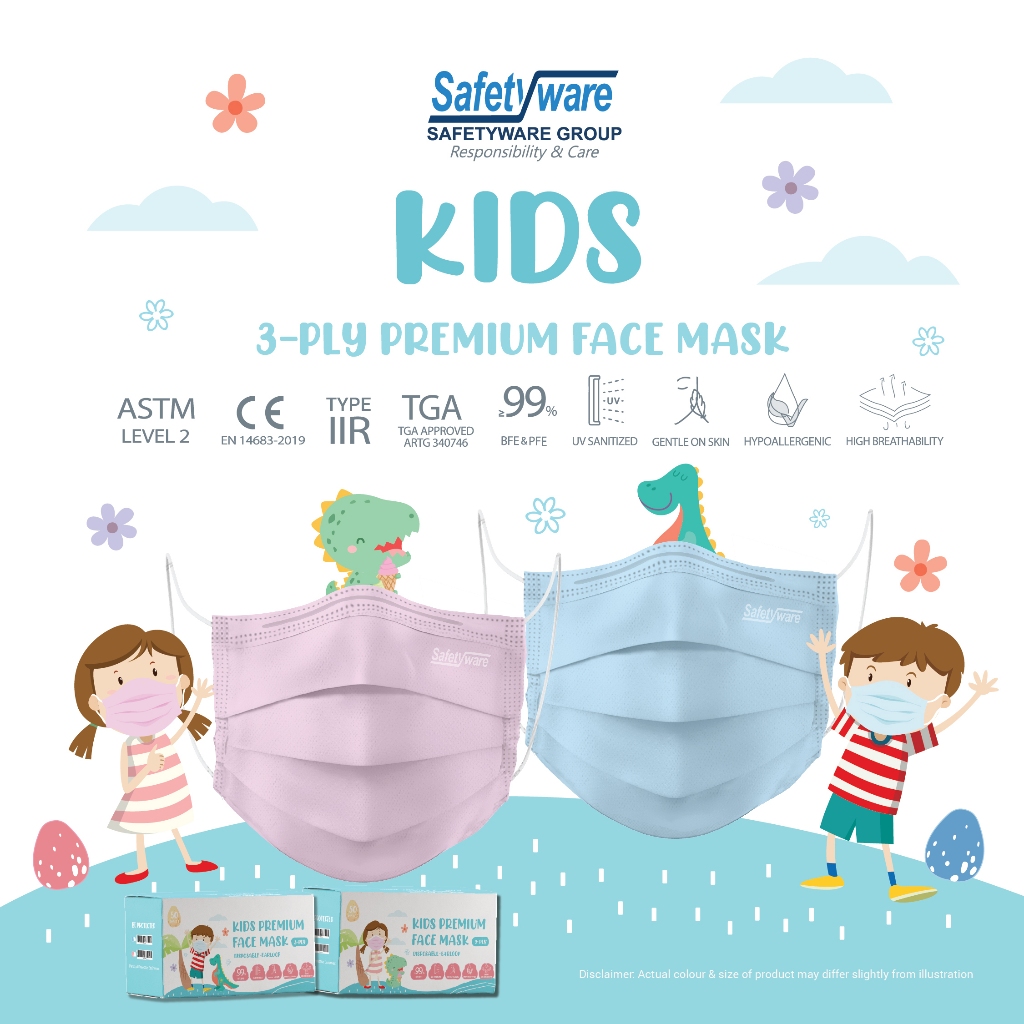 Safetyware (KIDS) 3-Ply Premium Medical Face Mask I Earloop Fold In I BFE≥ 99% PFE≥ 99% I 口罩 | Plastic Bags