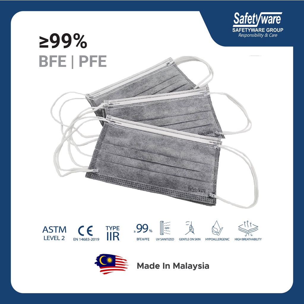Safetyware 4-Ply Activated Carbon Face Mask | BFE PFE ≥99.9% | Face Protection
