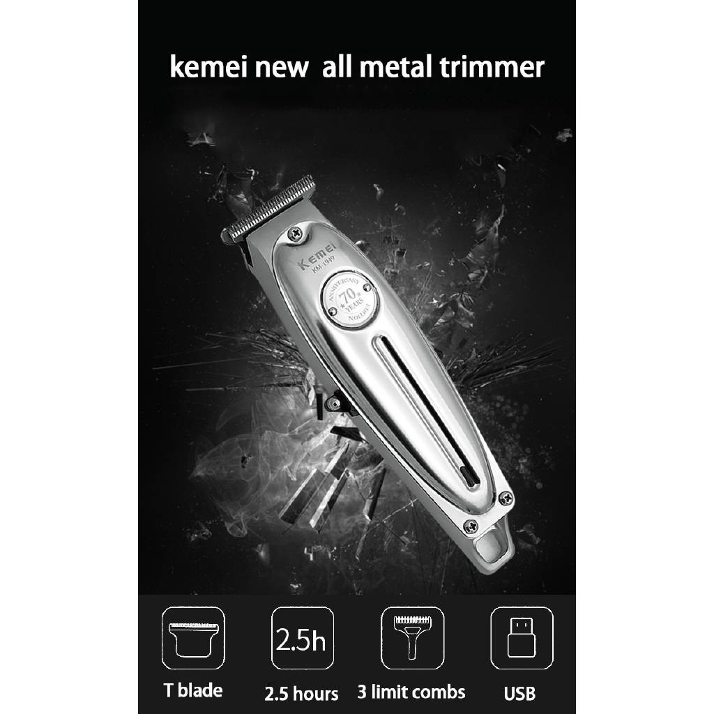 [Ready Stock] Kemei 1949 Men Electric Cordless Hair Trimmer T Blade Finish Machine (KM-1949)