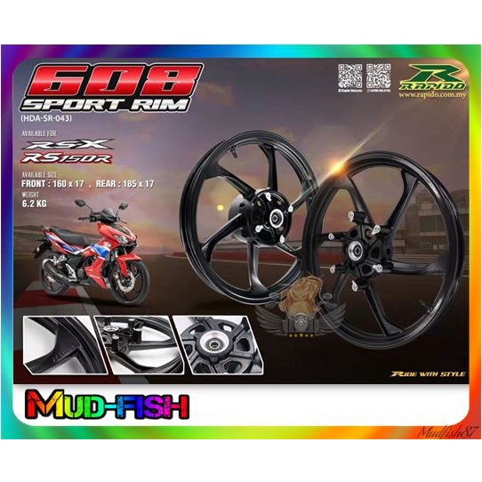 RAPIDO HONDA RS150R | RSX 150 ABS 608 SPORT RIM 160 X 17 / 185 X 17 RS150 (BLACK -608)