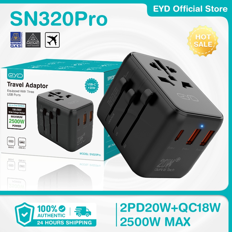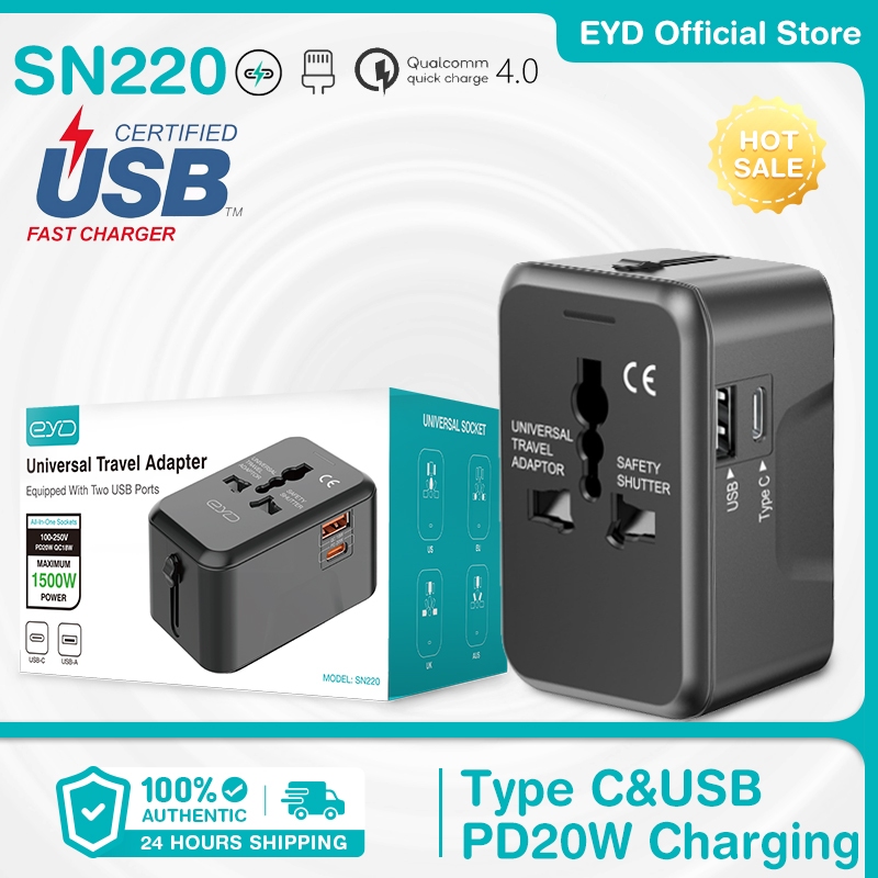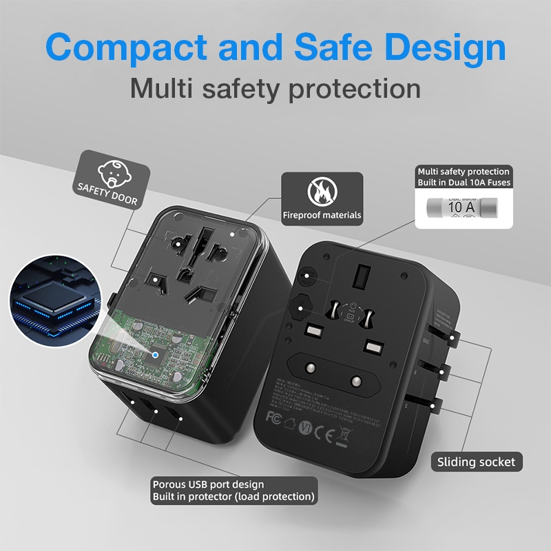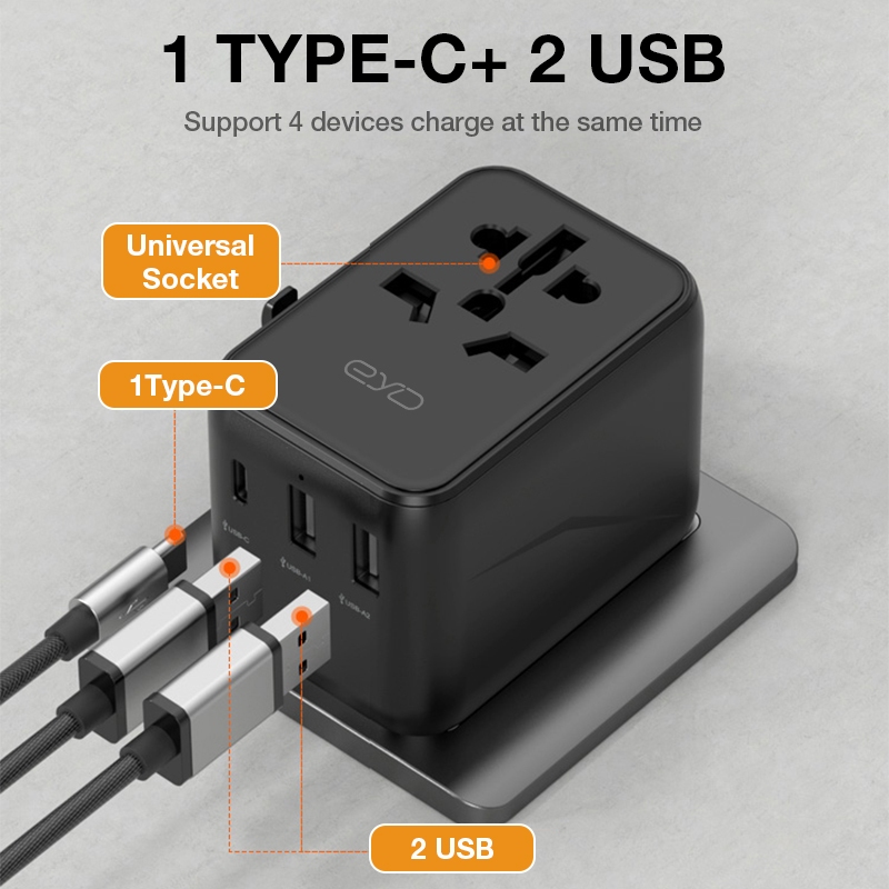 EYD All-in-one Worldwide Travel Adapter Universal International Charger Adapter Plug Protector Lock for JP KR ID HK