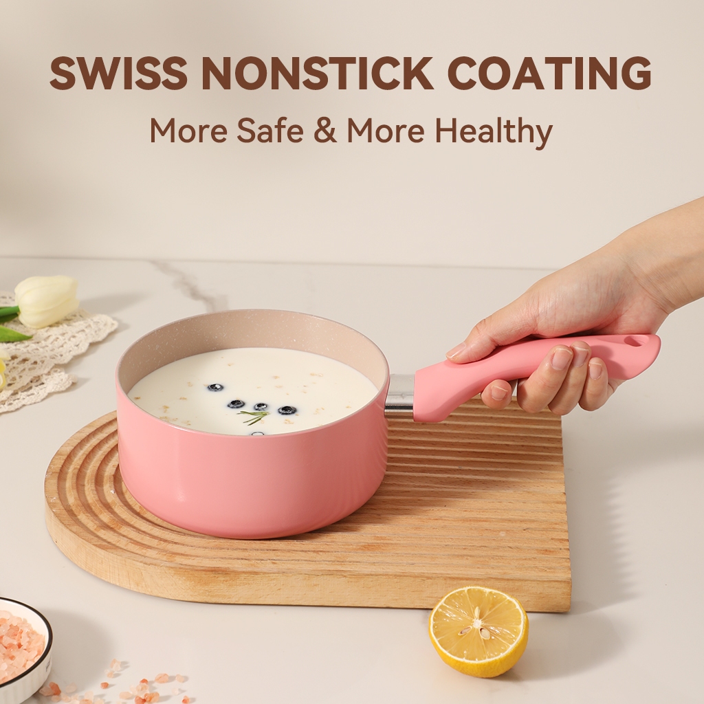 Ecowin Nonstick Cookware Set - Milk Pan + Frying Pan Pink Periuk Pfoa-Free Suitable For All Stoves