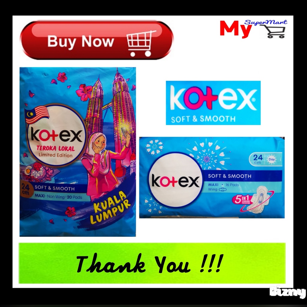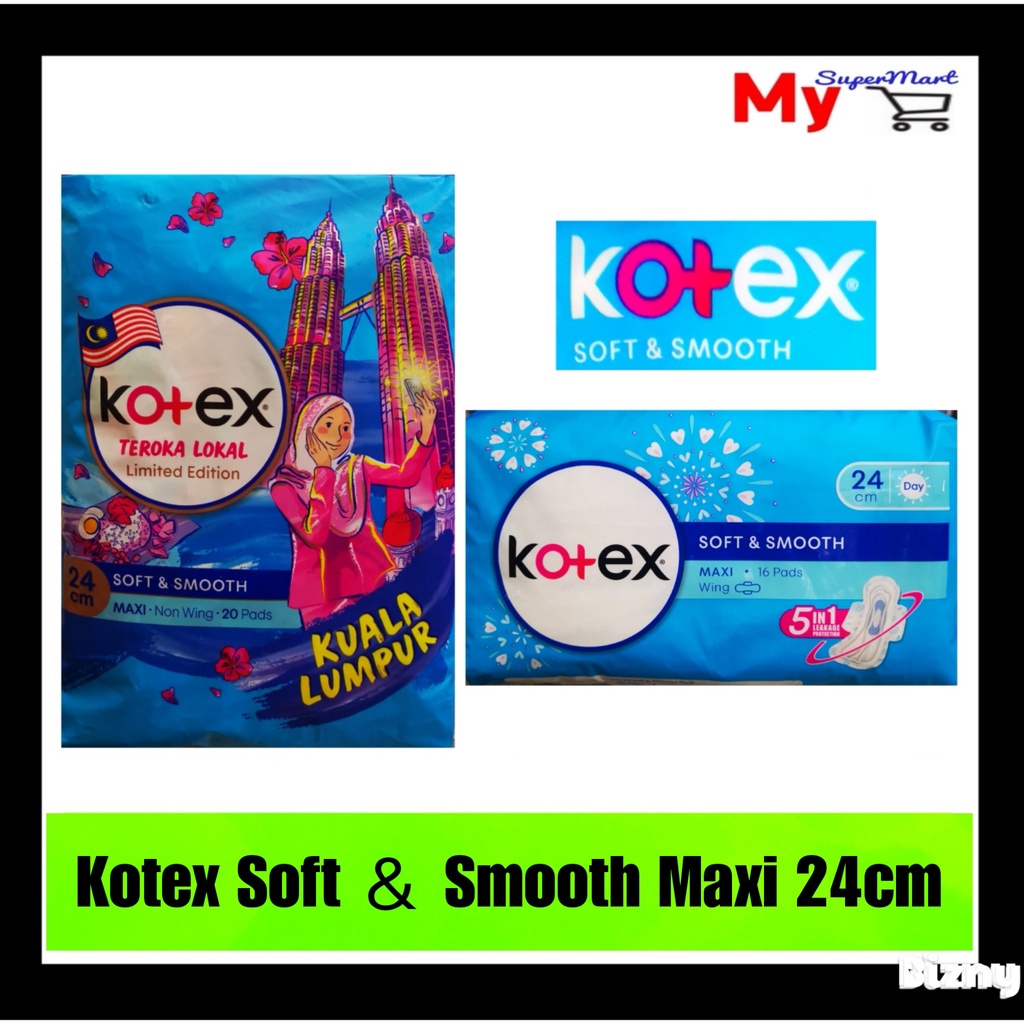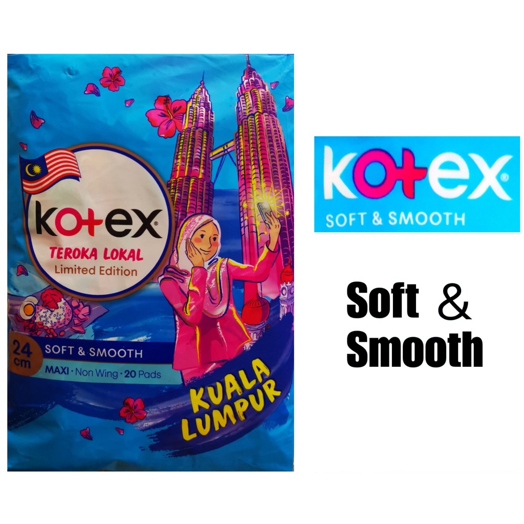 MY Kotex Soft & Smooth Maxi Wing 24cm 16 Pads Non Wing 24cm 20 Pads Pad Wanita 卫生棉