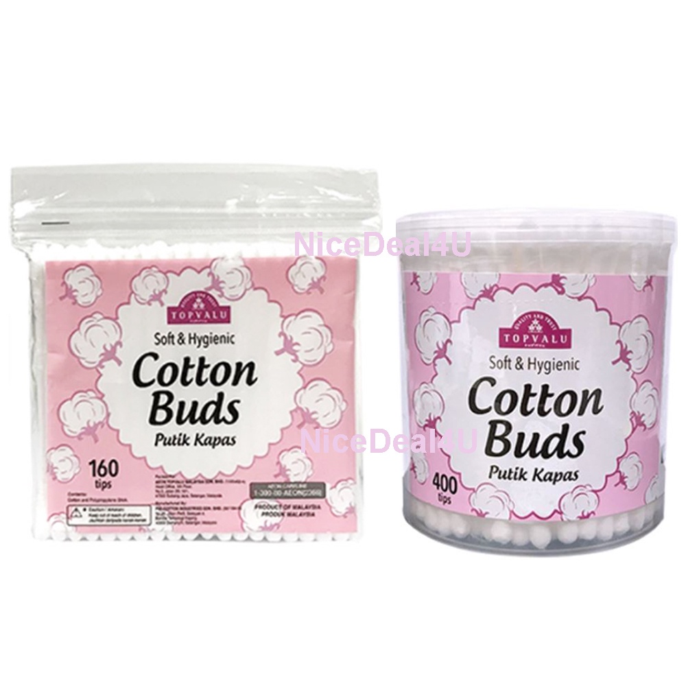 TOPVALU Soft & Hygienic Cotton Bud 160 tips/ Tub 400's Aeon Ear Buds Q-tips Beauty Nail Makeup Baby