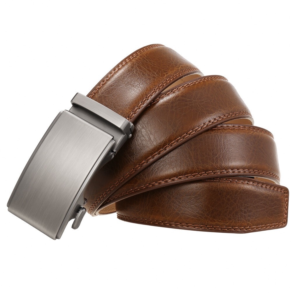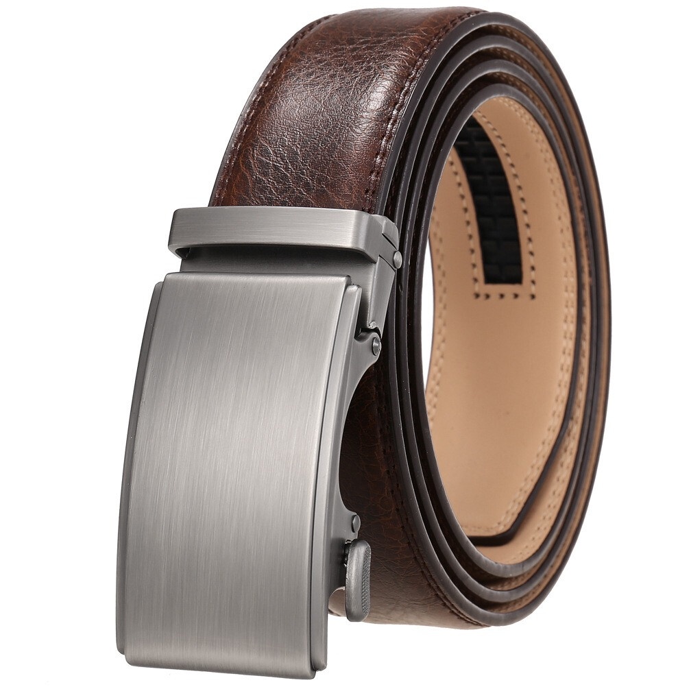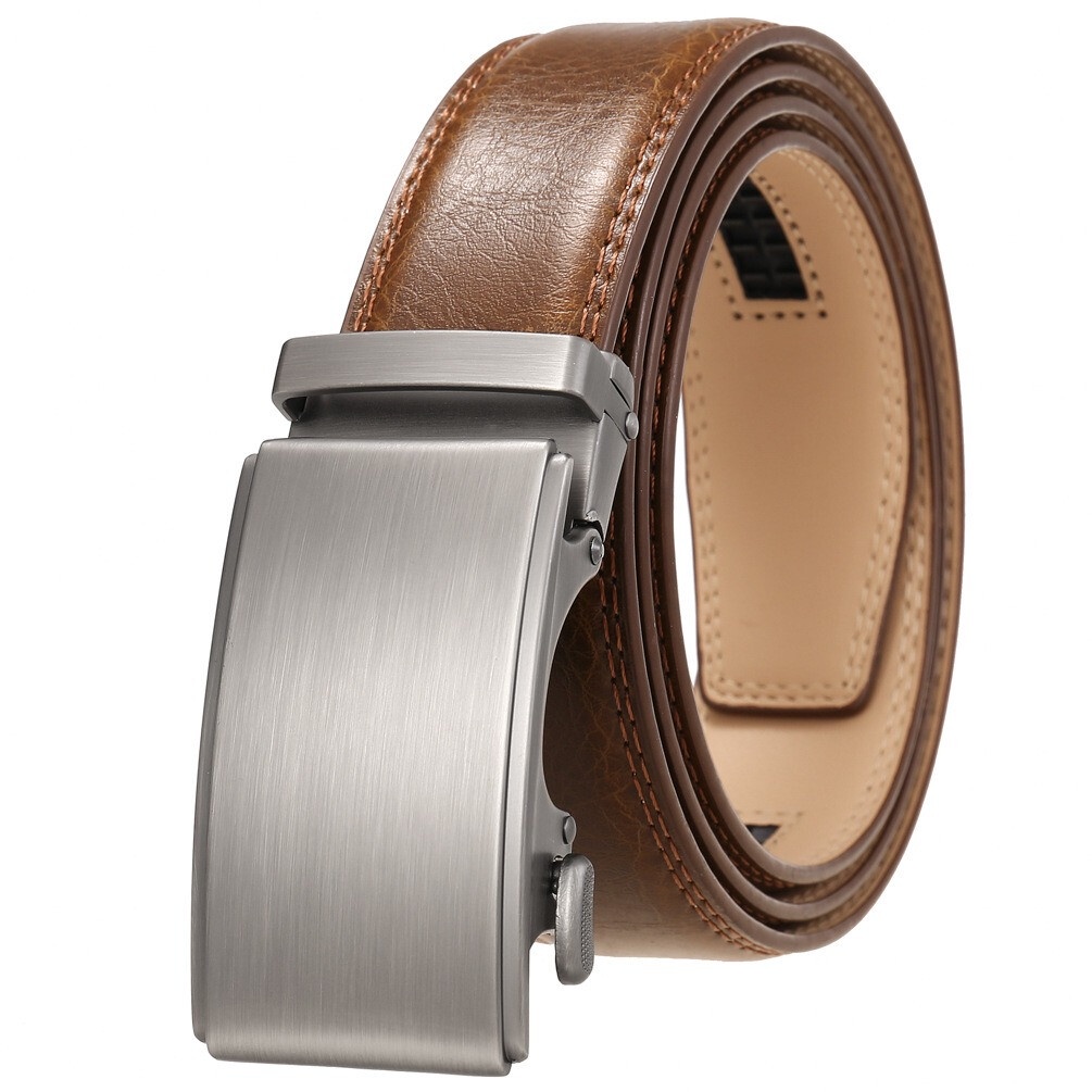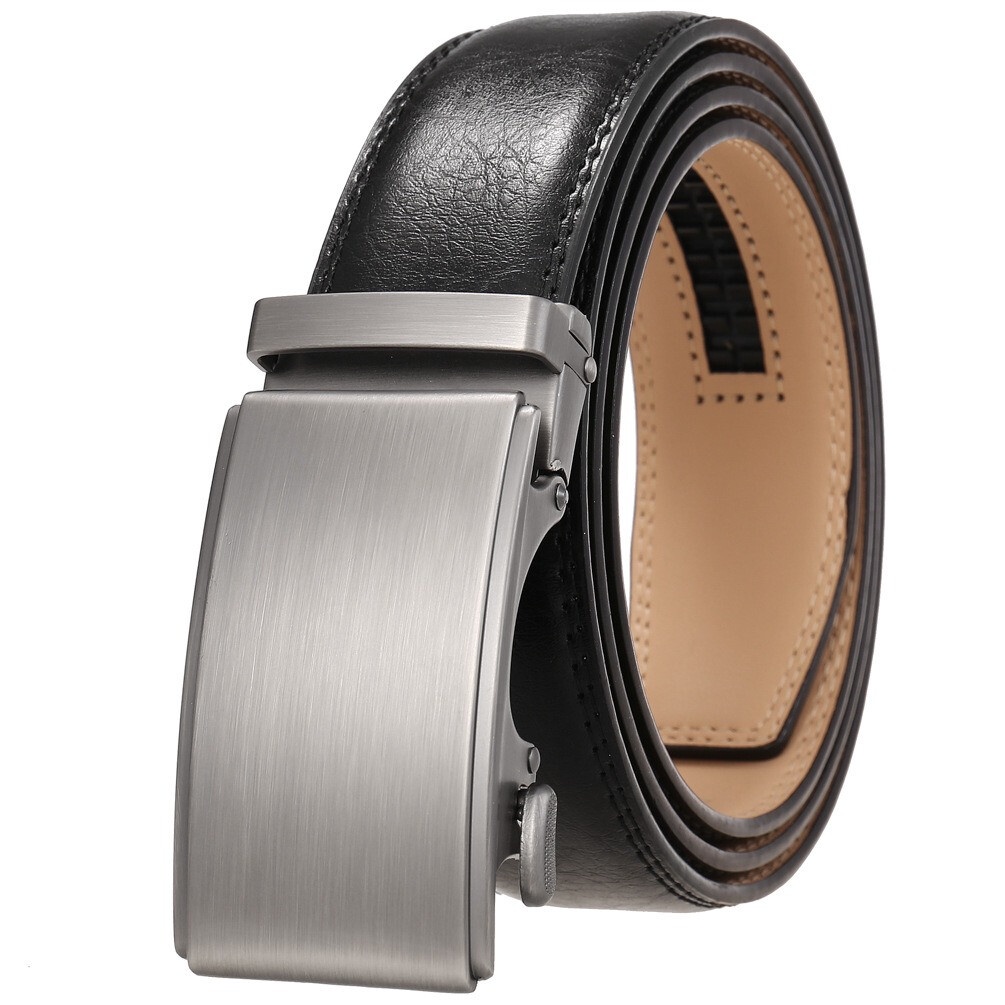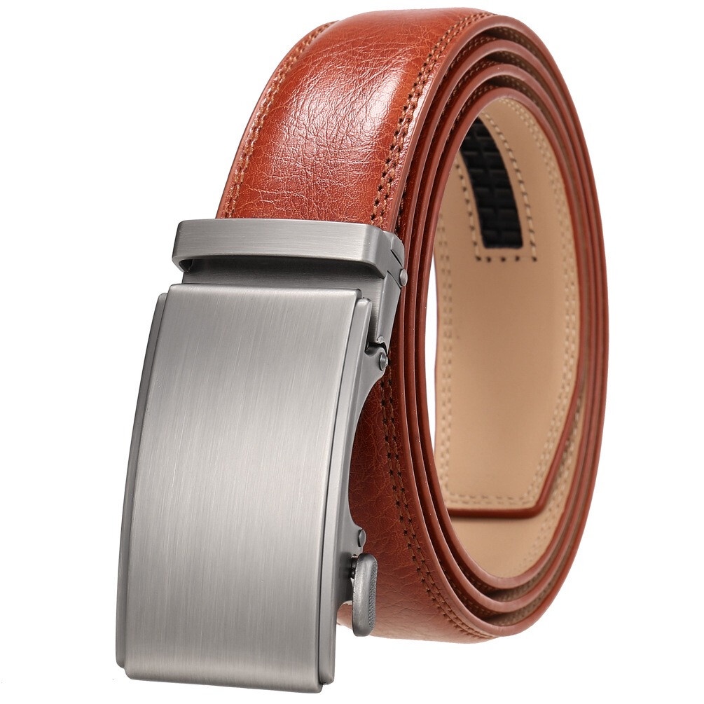 100% Cowhide Leather Belt Men's Automatic Buckle Belt Perfect Gift Laser Zinc Alloy Luxury Suitable Casual Wear Belt