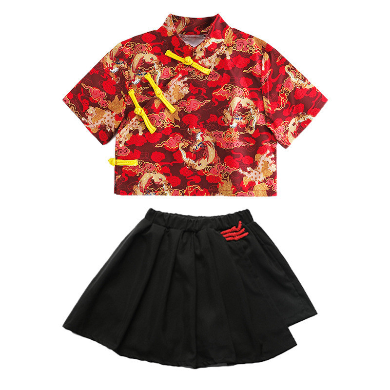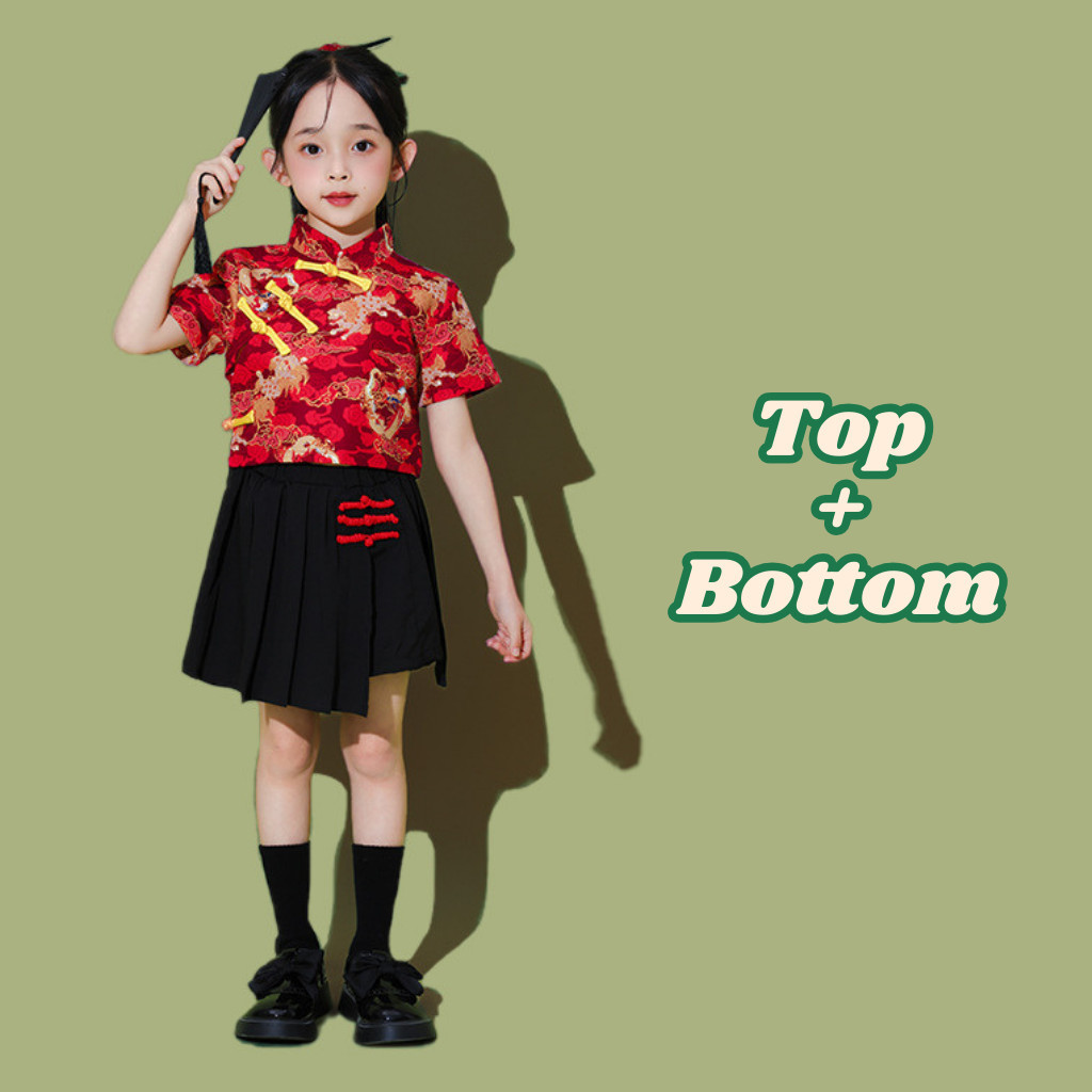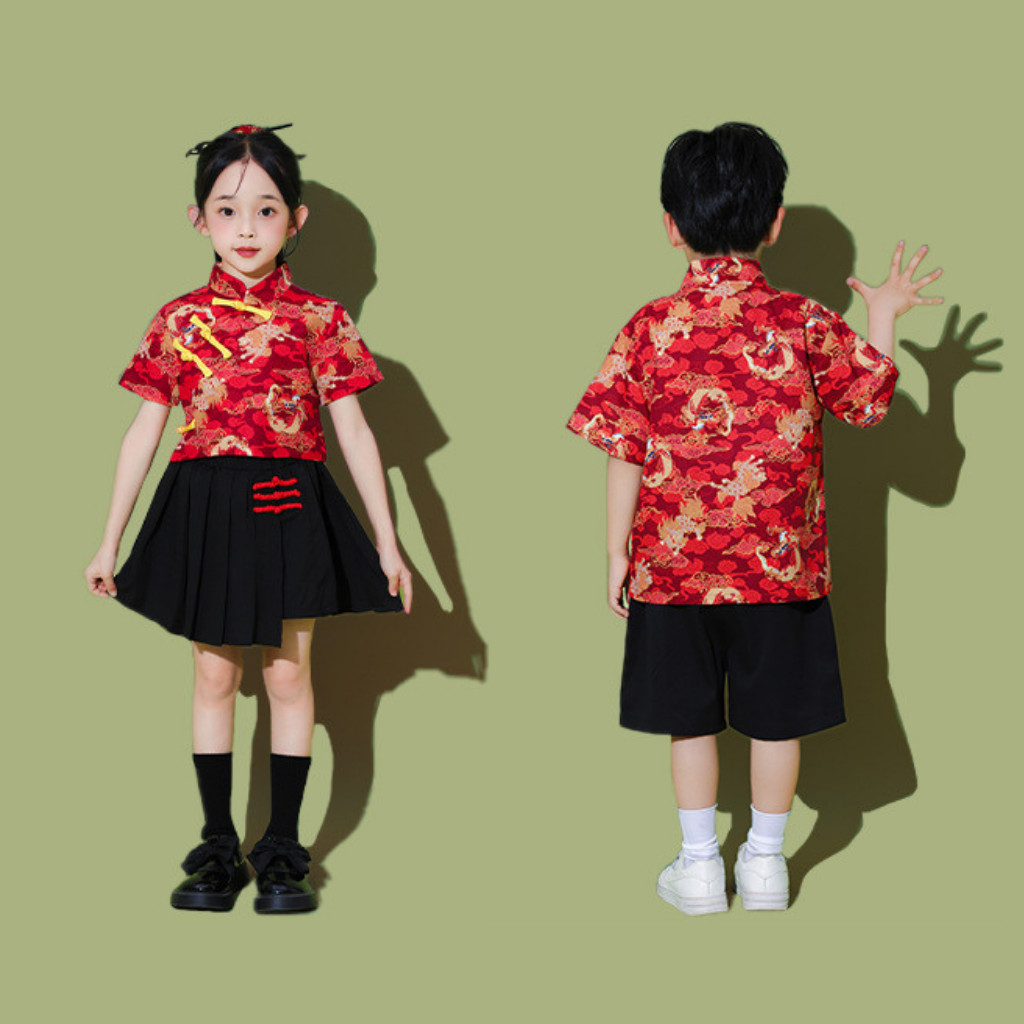 EASY WEARHOUSE Modern Chinese Hanfu Chinese New Year Clothes Dragon Pattern Siblings Outfit CNY Family Set