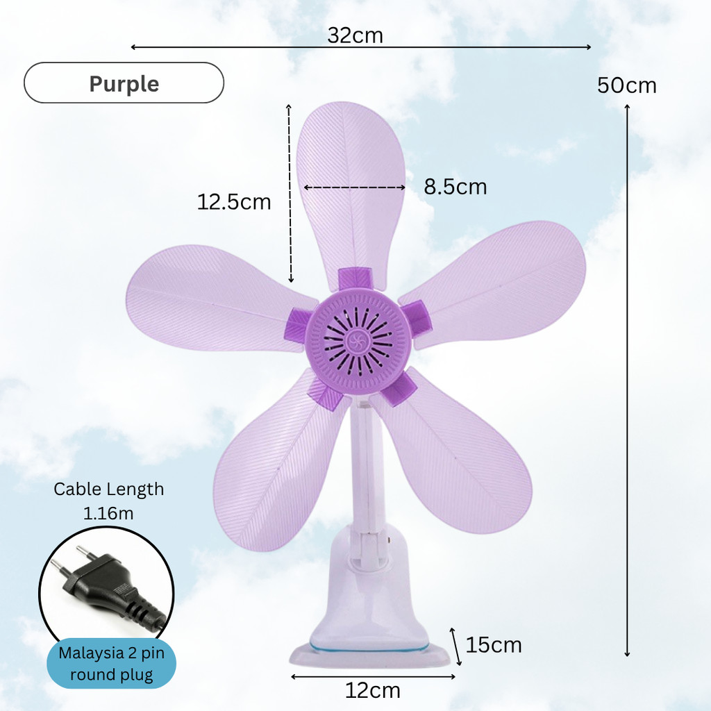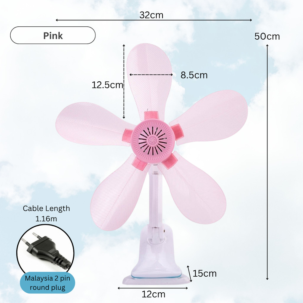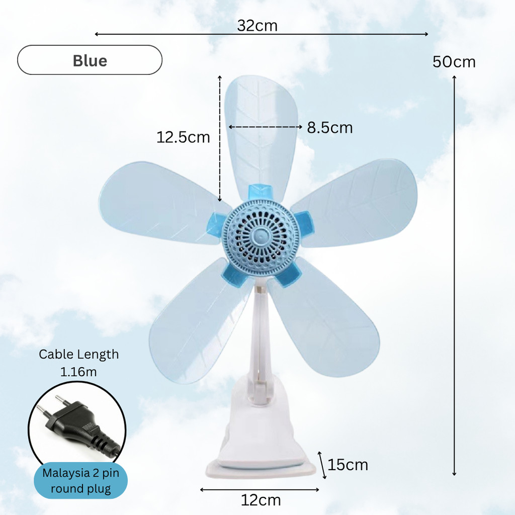 5 Blades Malaysia 2 Pin Plug Strong Wind Clip Fan Cooling Adjustable Angle Silent Motor Kipas Klip Angin Kuat Dapur