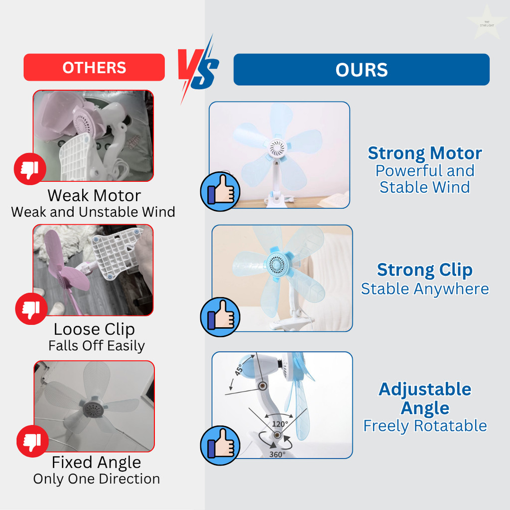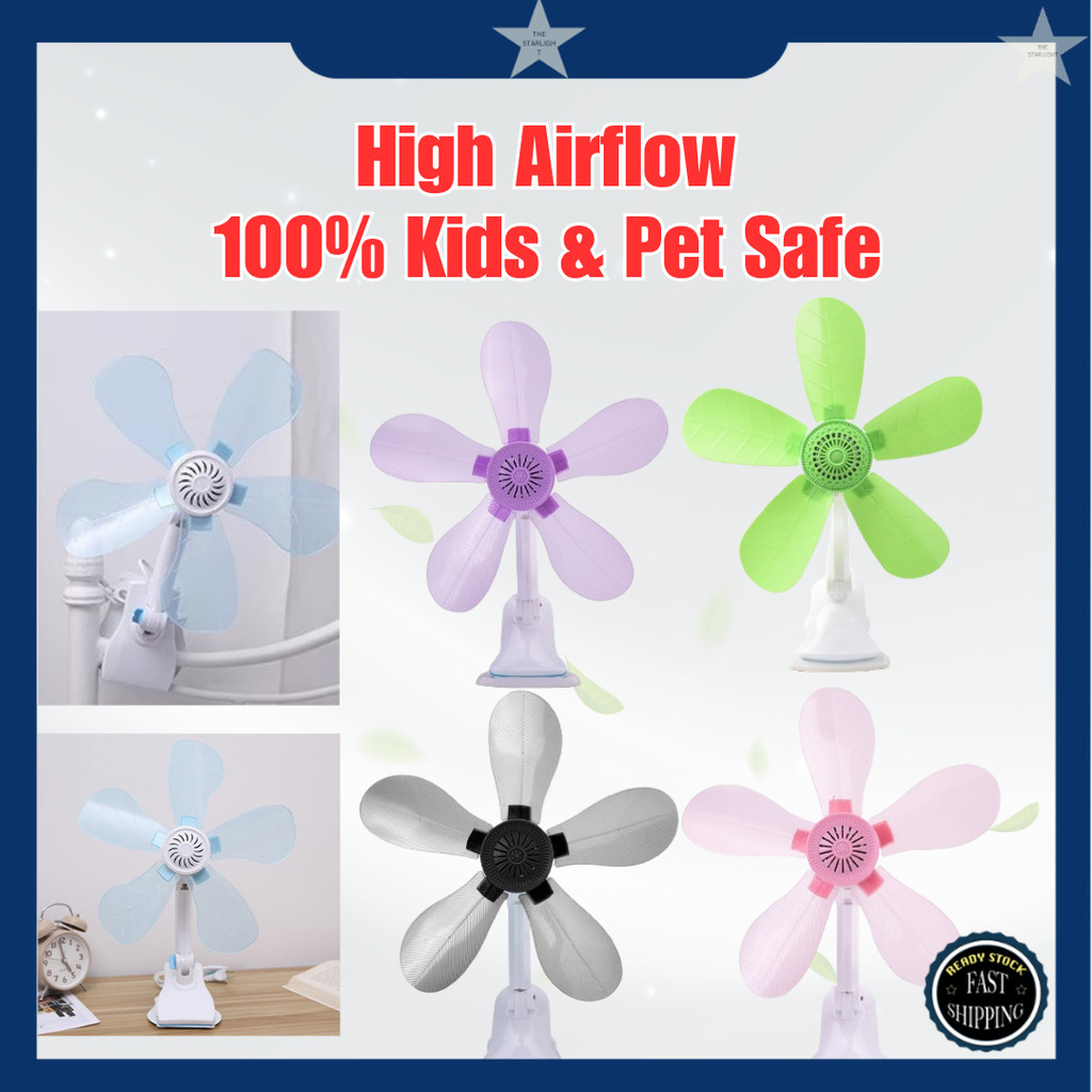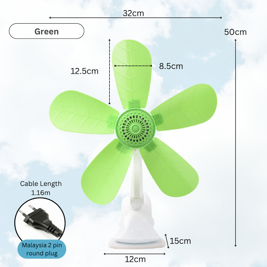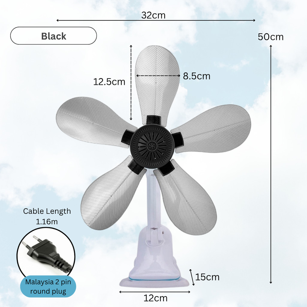 5 Blades Malaysia 2 Pin Plug Strong Wind Clip Fan Cooling Adjustable Angle Silent Motor Kipas Klip Angin Kuat Dapur