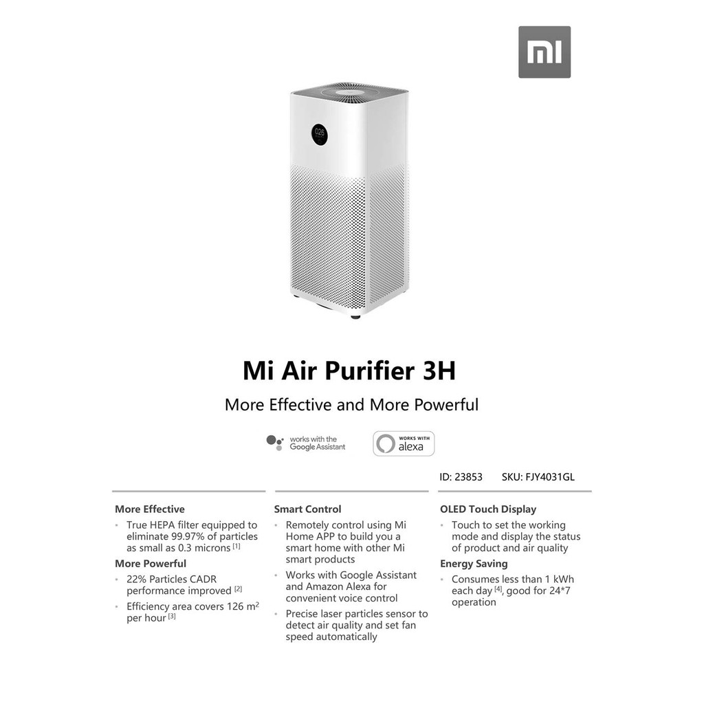 Xiaomi Smart Air Purifier 3H - Mi Smart Home Oled Screen Display with 2pin Malaysia- Global Version