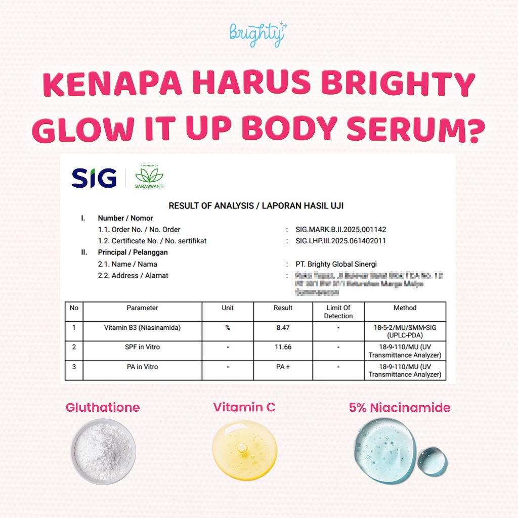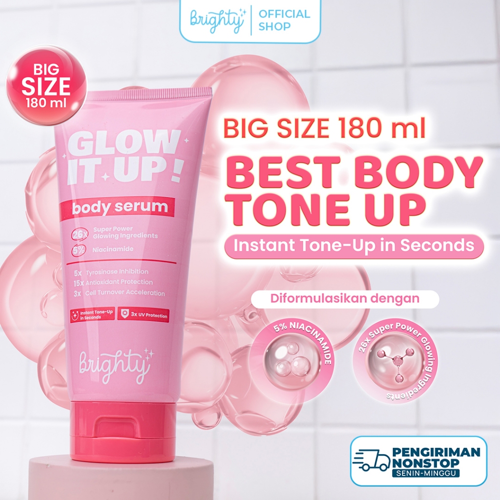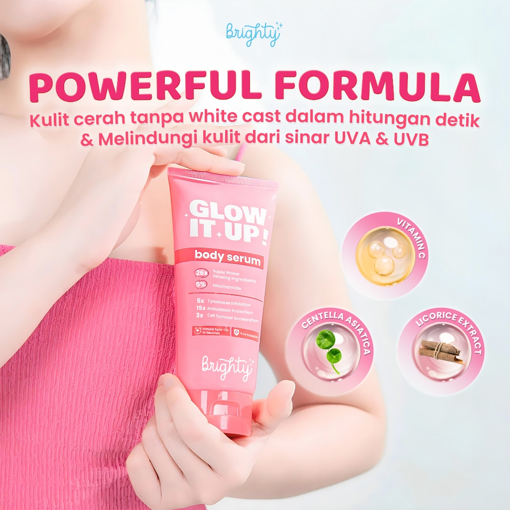 [ NEW LAUNCH 180ml ] Brighty Glow It Up Body Serum Reduces Dark Spots Skin Brightener Moisturizes Skin Strengthens Skin Barrier Body Serum Whitening Disguise Dark Spots Body Serum Moisturizing Skin Halal MUI BPOM