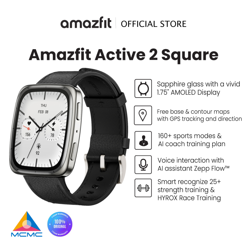 Amazfit Active 2 Square Smart Watch 43mm, GPS Maps with Direction, Fitness Tracker, 10 Day Battery, 160+ Sport Modes