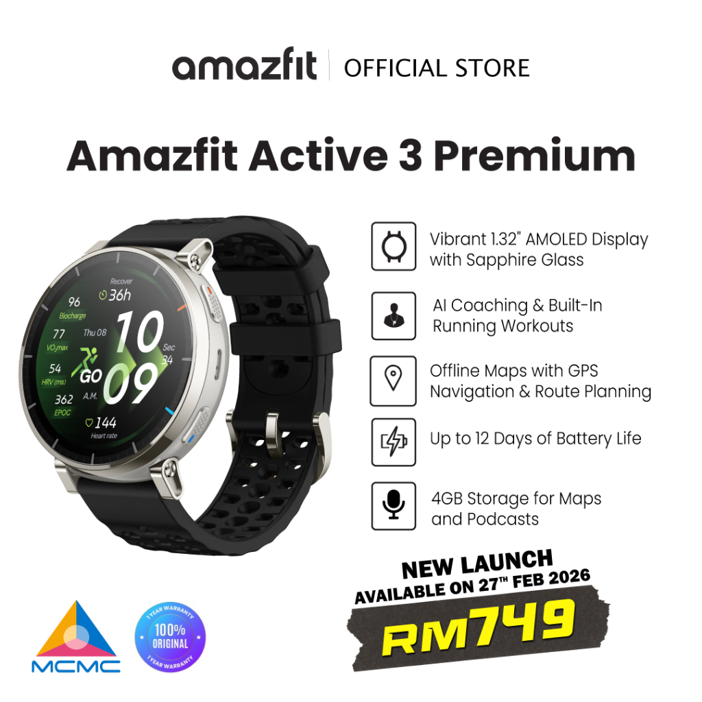 Amazfit Active 3 Premium Smart Watch,AI Fitness Coach,GPS,Bluetooth Call&Music, 12 Day Battery, Android &iOS