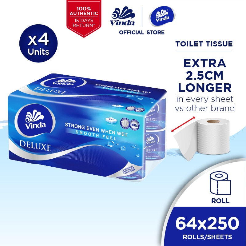 Vinda Deluxe Smooth Feel Toilet Tissue (64 Rolls/16 Rolls x 4 Packs)