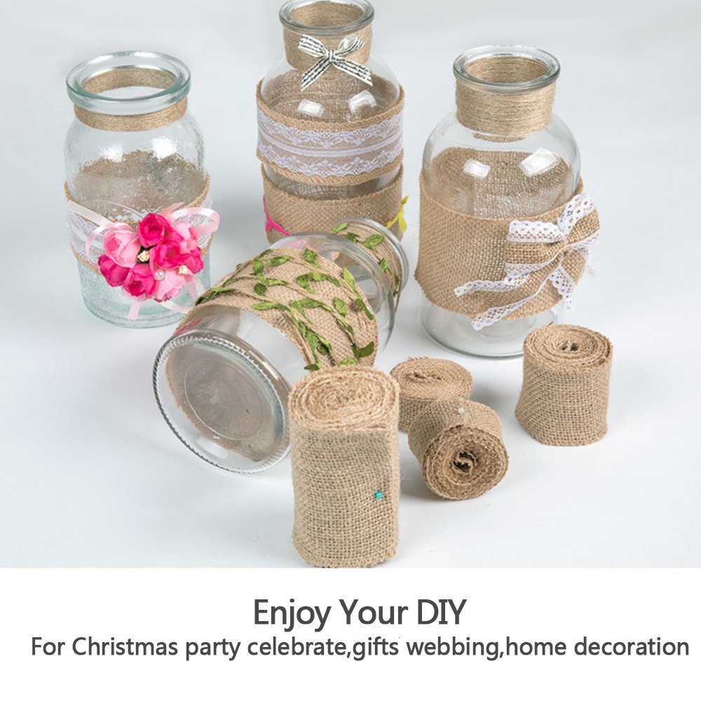 Wholesale 5M/Roll Vintage Ribbon Wedding Decor / Jute Burlap Ribbon Decor / DIY Handcrafted material / Table Runners /Wraping Gift Packing Burlap Ribbon / Natural Hemp Ribbon Lace for Christmas party wedding decor