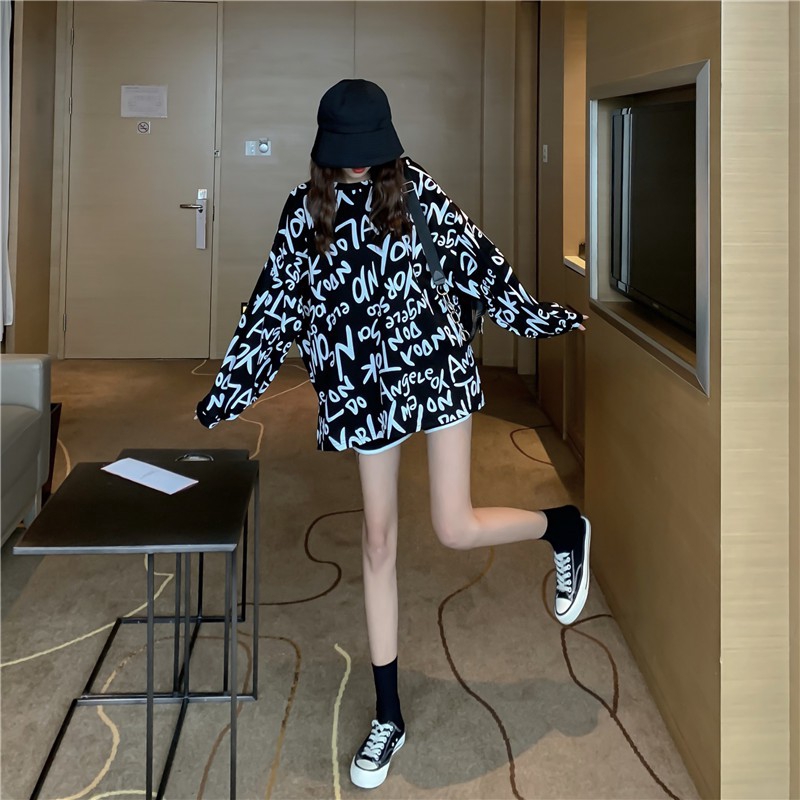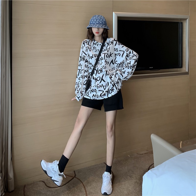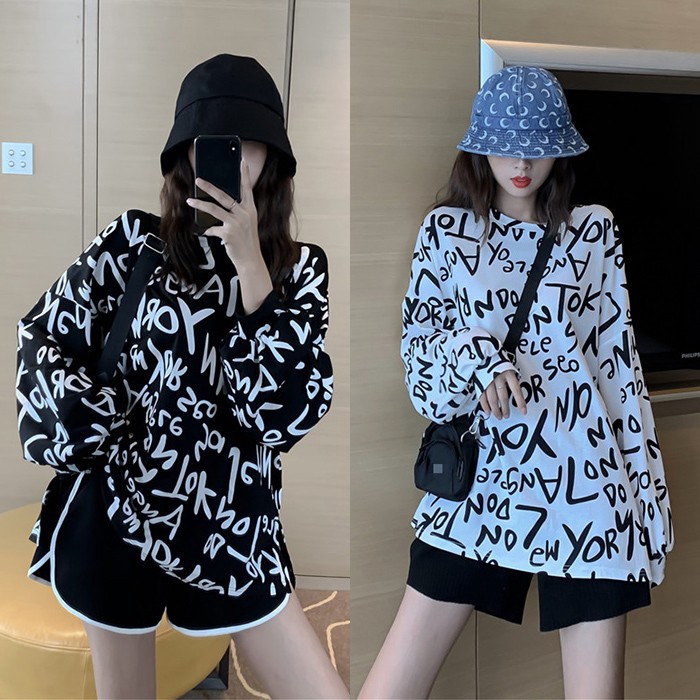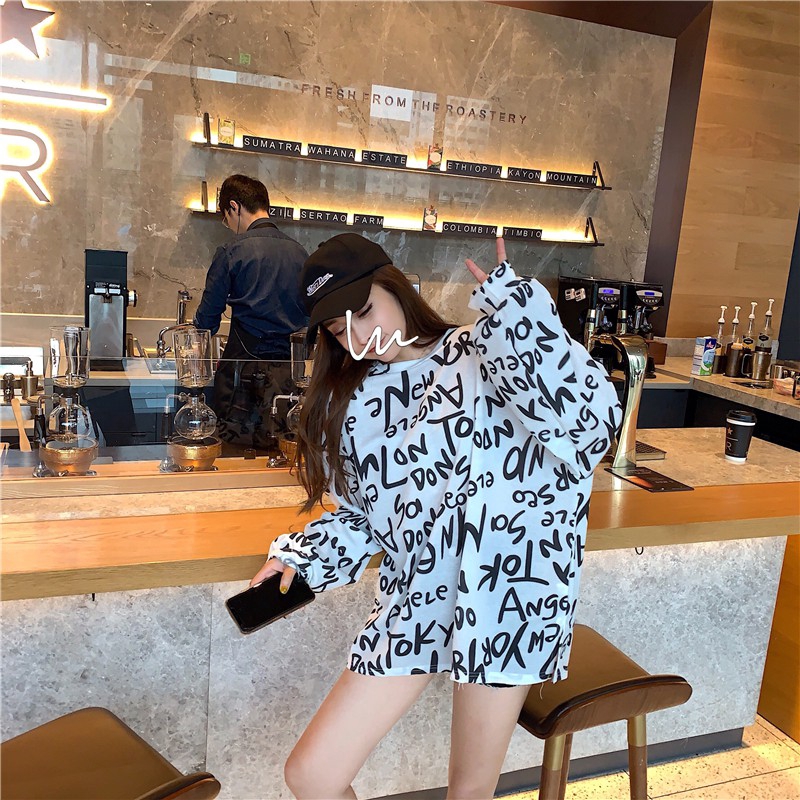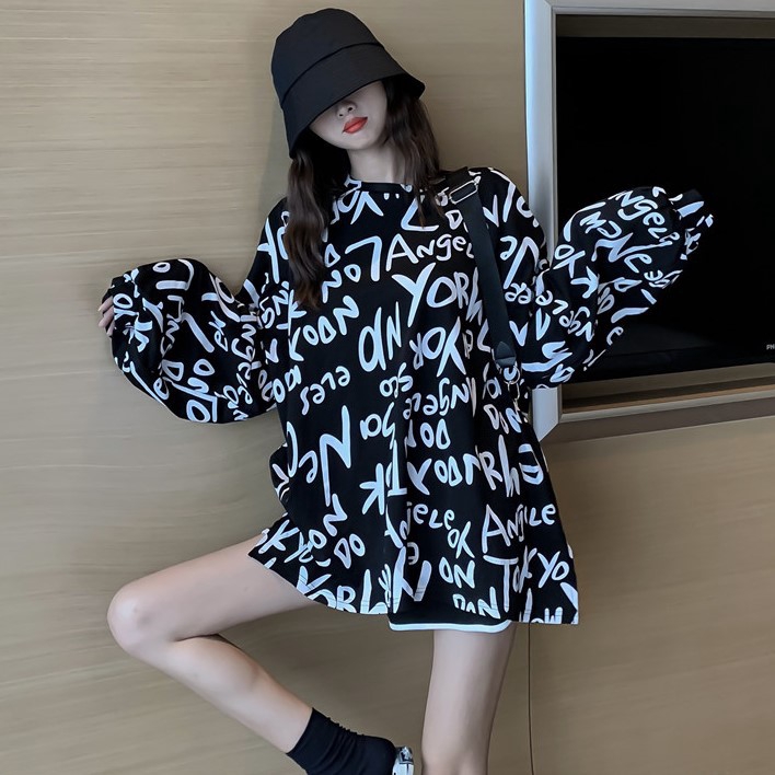 ⚡9.9⚡Crazy Flash Sale Lady Long-sleeved Oversize Loose T-shirt Women Printed Letters Hip Hop Clothing New Fashion Korean Comfortable Tee