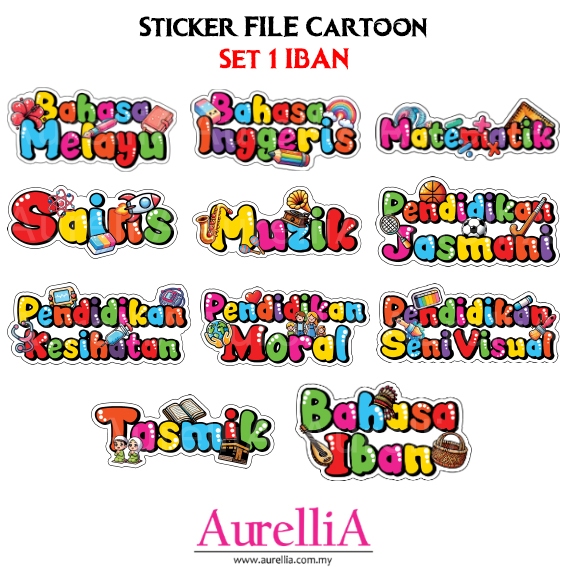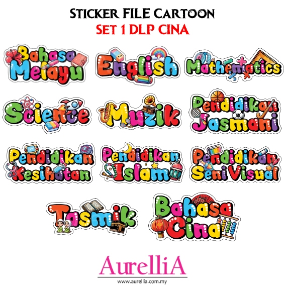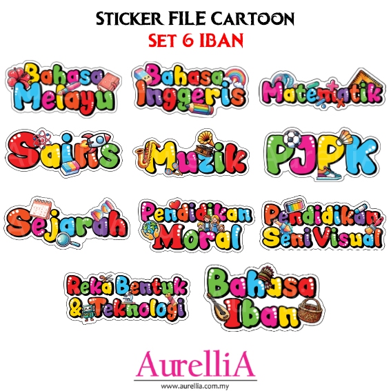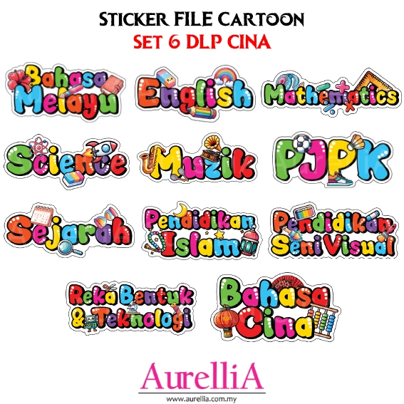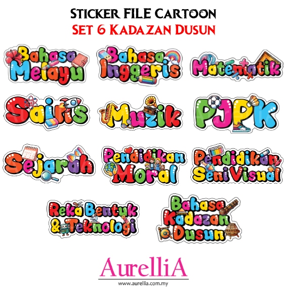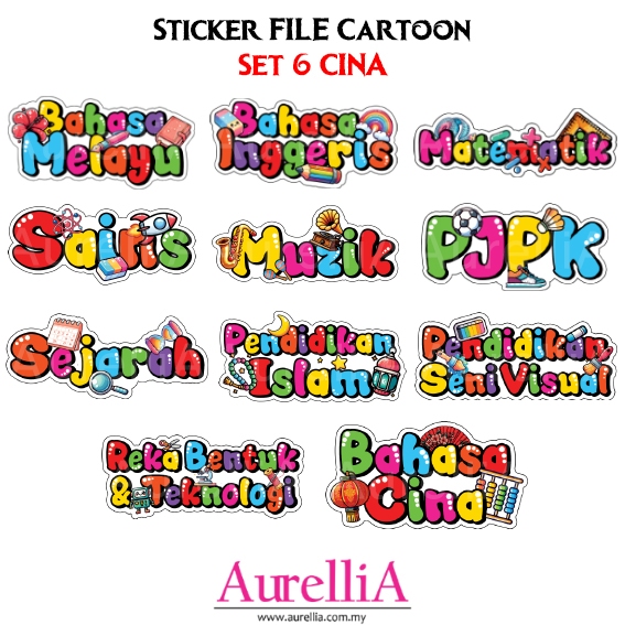 BIG WATERPROOF Sticker Subjek FILE Cartoon Label Subjek Sekolah Rendah