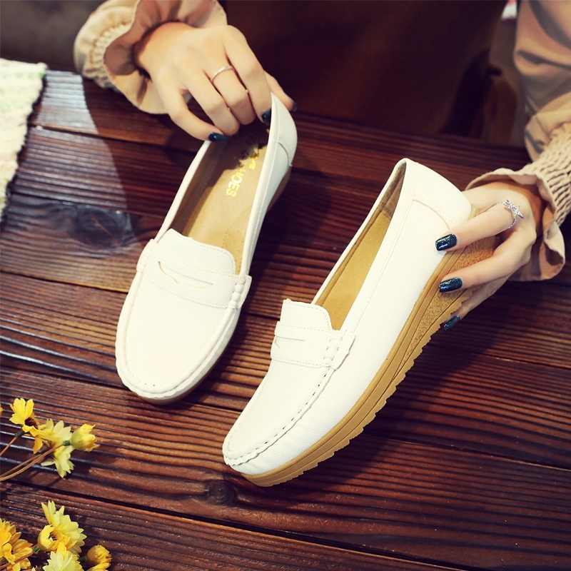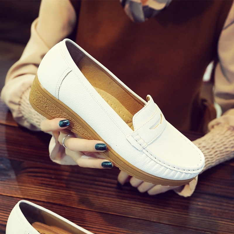 Women Casual Flat Heel Shoes Loafers Shoes Elegant Soft Leather Nurse Shoes