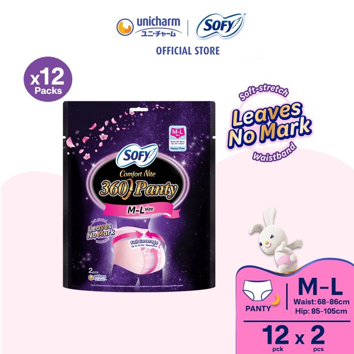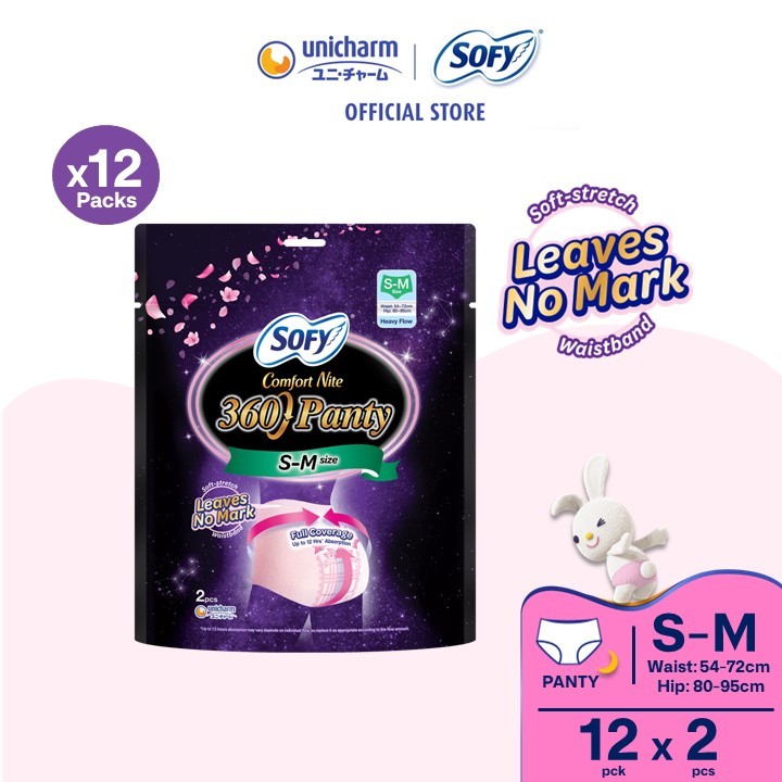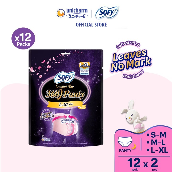SOFY Comfort Nite 360 Panty Overnight Panty S-M/M-L/L-XL 2pcs (12 Packs)