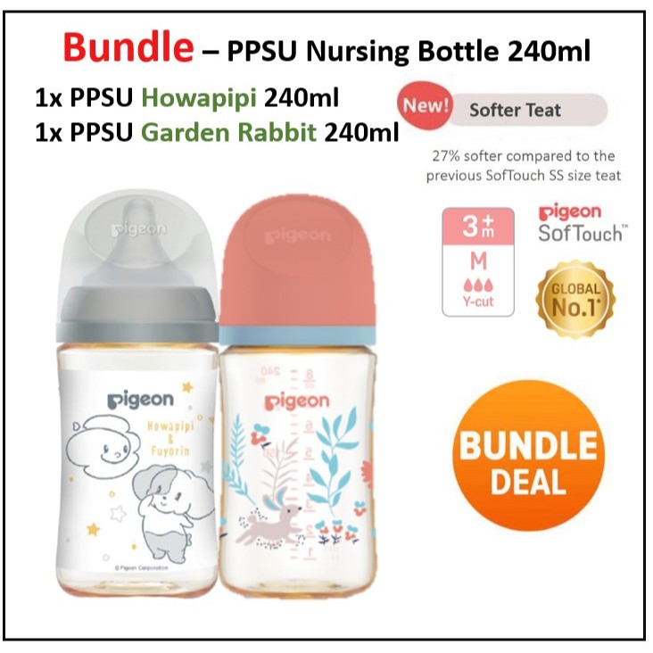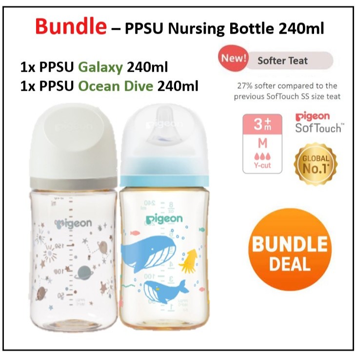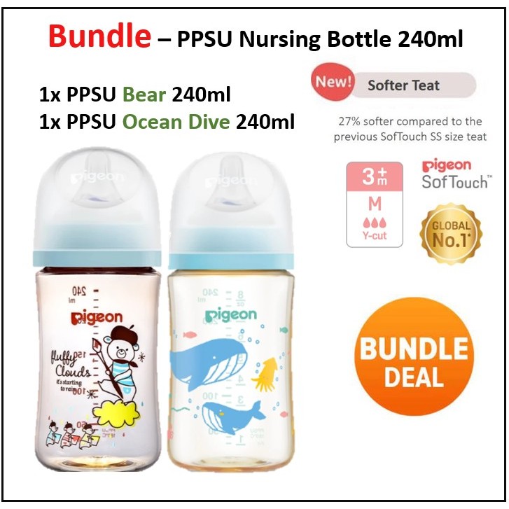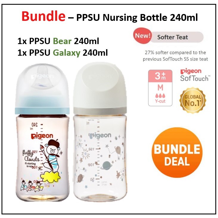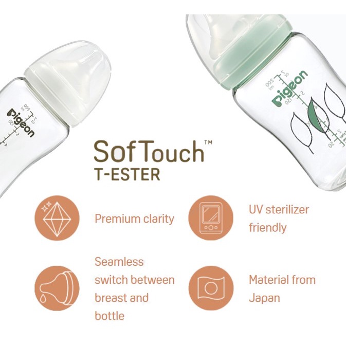 PIGEON SofTouch Wide Neck PP PPSU Nursing Bottle/ T-Ester / Flexible Standard Neck Botol Susu