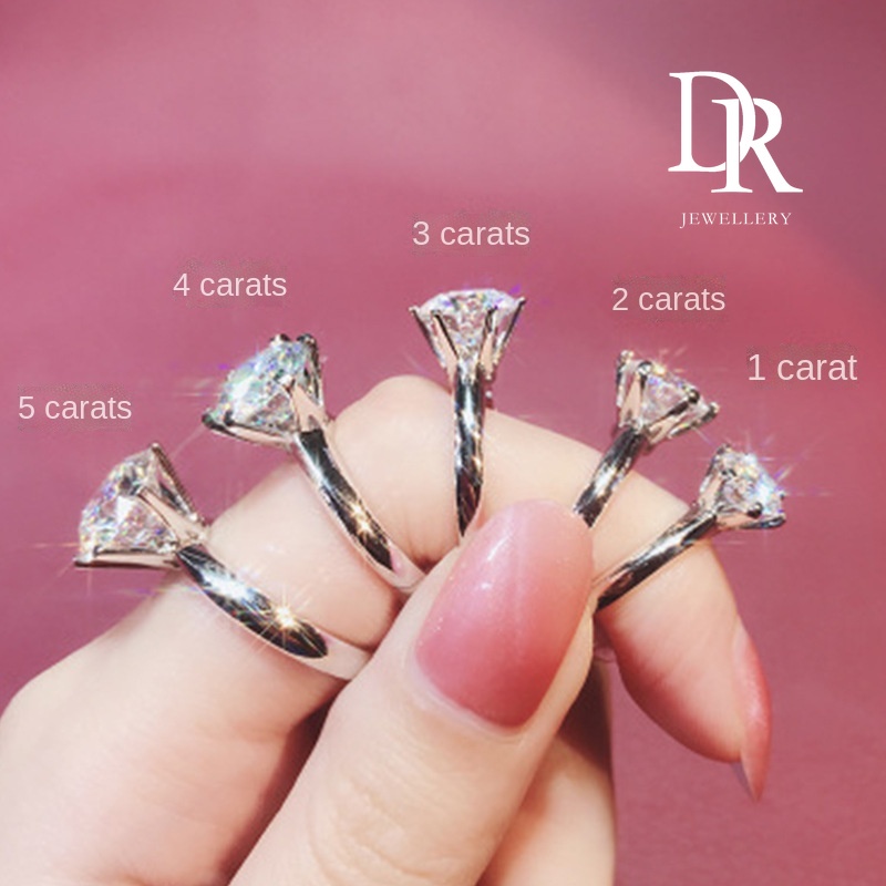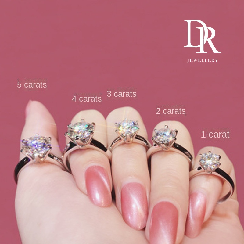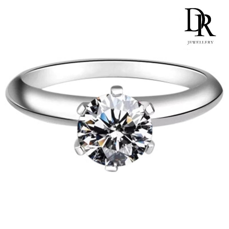 DR Jewelry Cincin Cincin Silver 925 Original Perempuan Permata Women Stainless Rings Inlaid Moissanite Classic Engagement Tunang Six-Claw Diamond Ring Fashion Korean Accessories