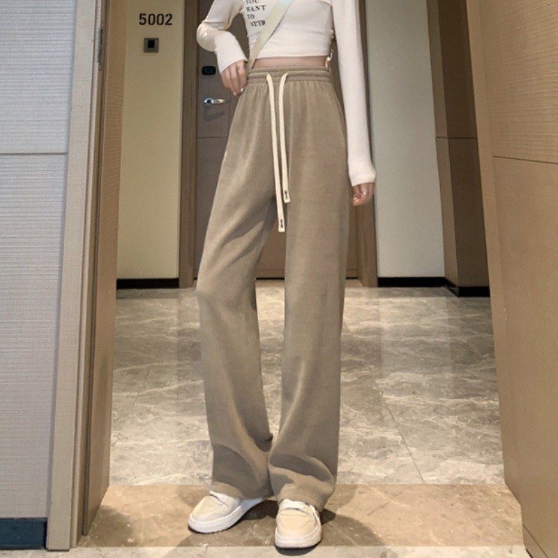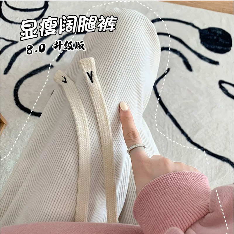 Corduroy wide-leg pants 2025 autumn and winter new high-waist slimming casual pants large size