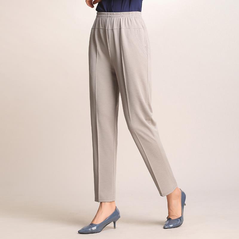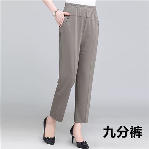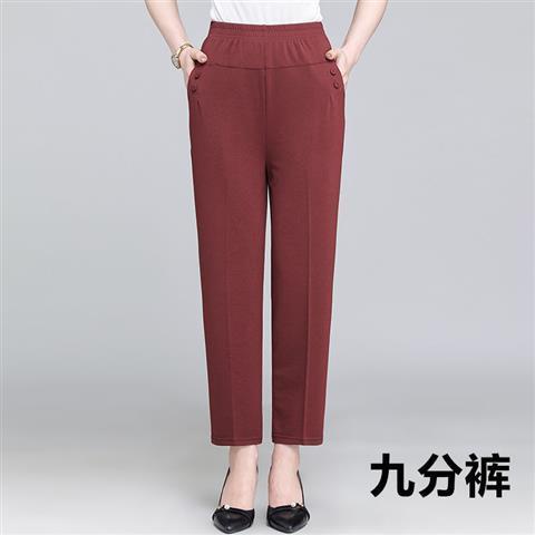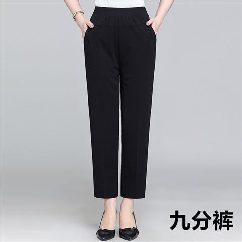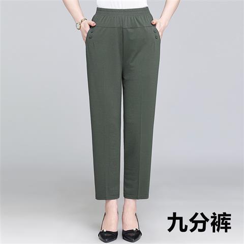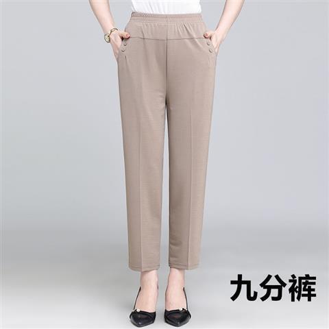 Middle-aged and elderly women's pants in summer, nine-cent pants are loose, tight, high-waisted, mom's pants are elastic.