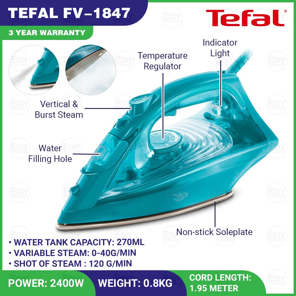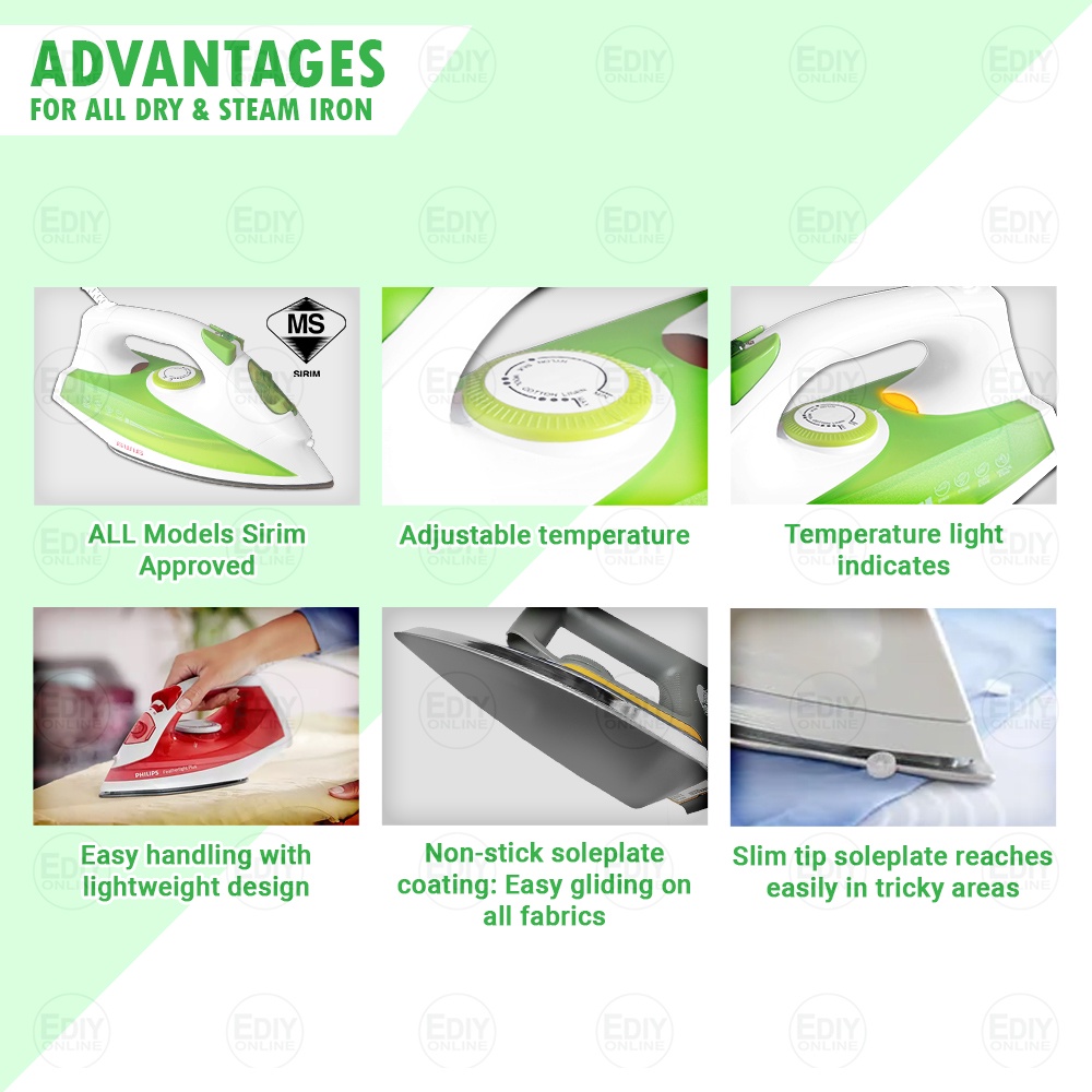 SIRIM DRY STEAM IRON PORTABLE NONSTICK NON STICK SETERIKA STEAMER PHILIPS TEFAL HD1172 HD-1172 GC1424 GC-1424