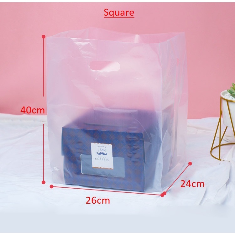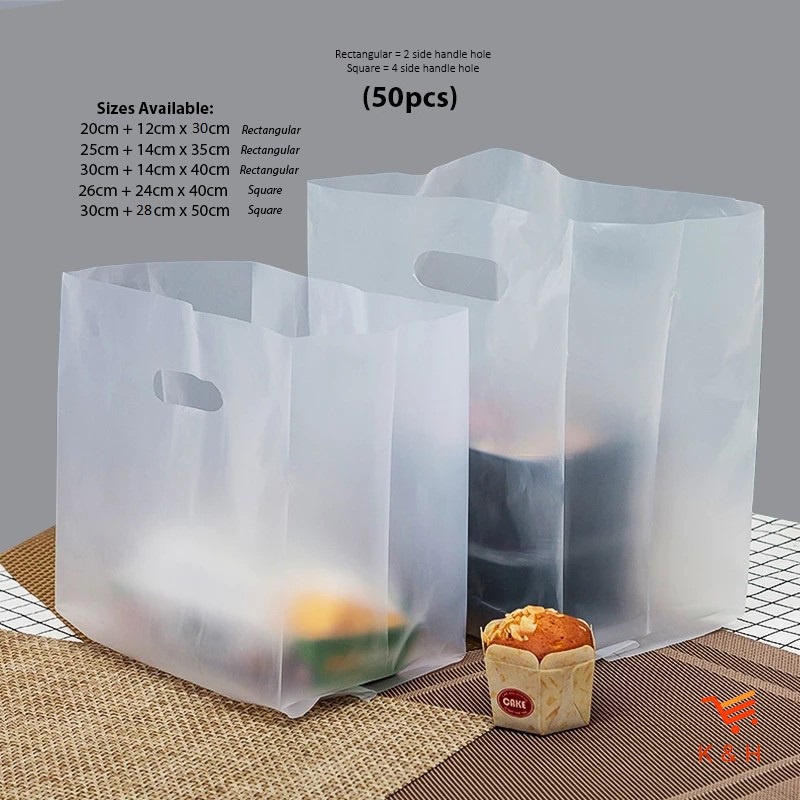 Beg Plastik [50pcs +/-] Plastic Handle Bag/ Plastic Punch Hole Bag/ Cake Box Packaging/ Bakery Pastry Plastic Bag/ 食品透明袋