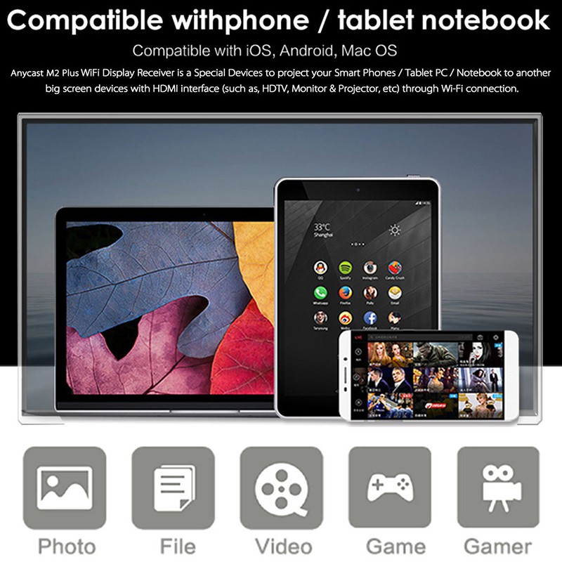 AnyCast HDMI Dongle Wifi Display Receiver TV EzCast 1080P TV Smartphone Laptop