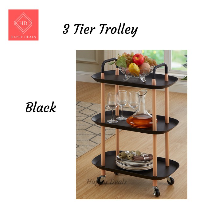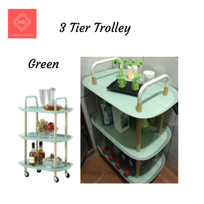 Happy Deals Luxury Nordic Trolley 3 tier wheel Trolley storage Rack living room kitchen Multipurpose Storage Rack