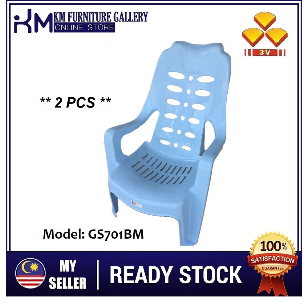 KM Furniture 3V Heavy Duty High Back Plastic Relax Chair/Lazy Beach Chair/Comfortable Chair/Kerusi Bersandai (***2 PCS)