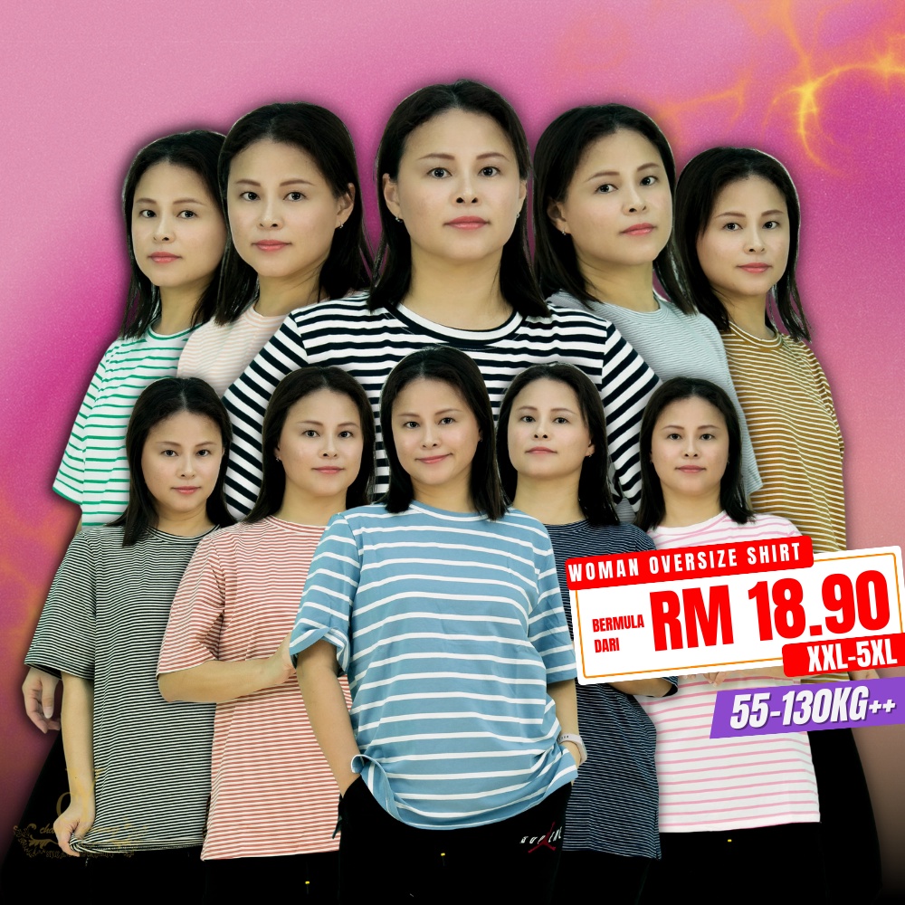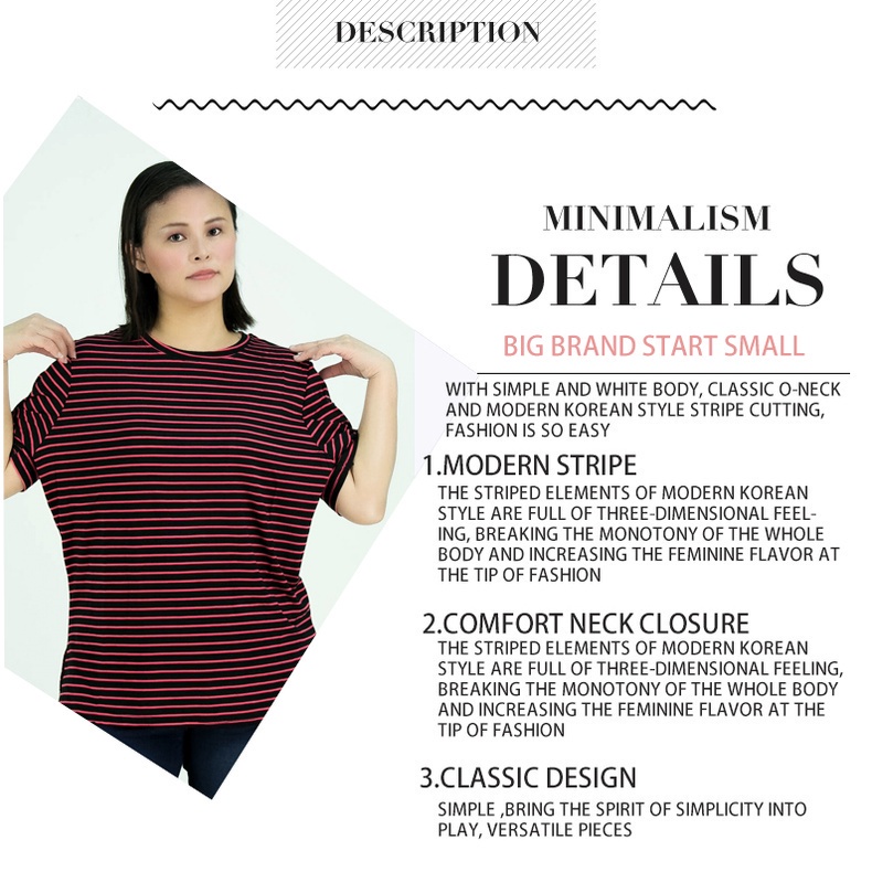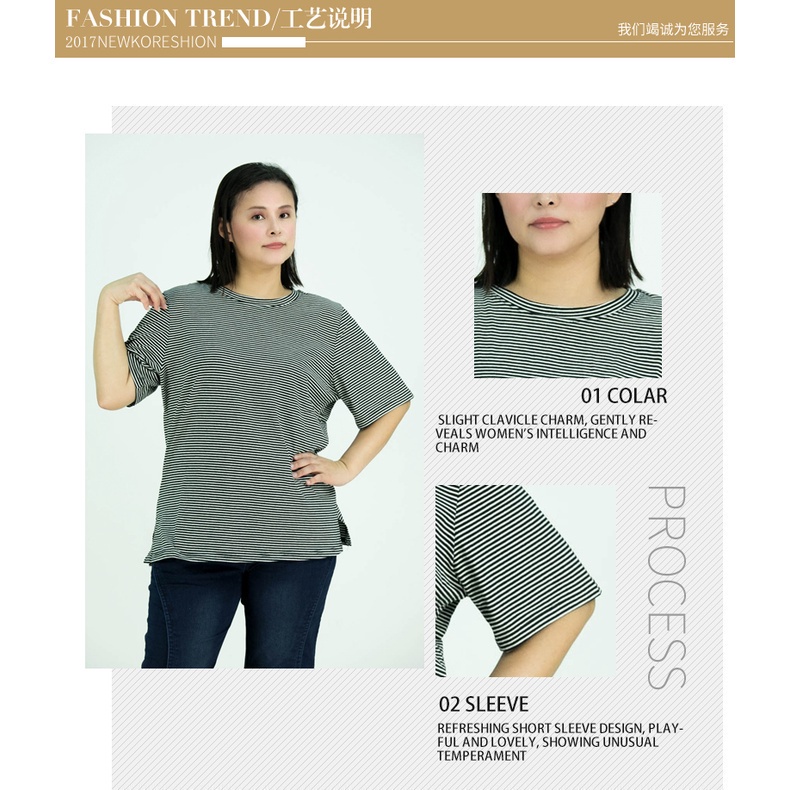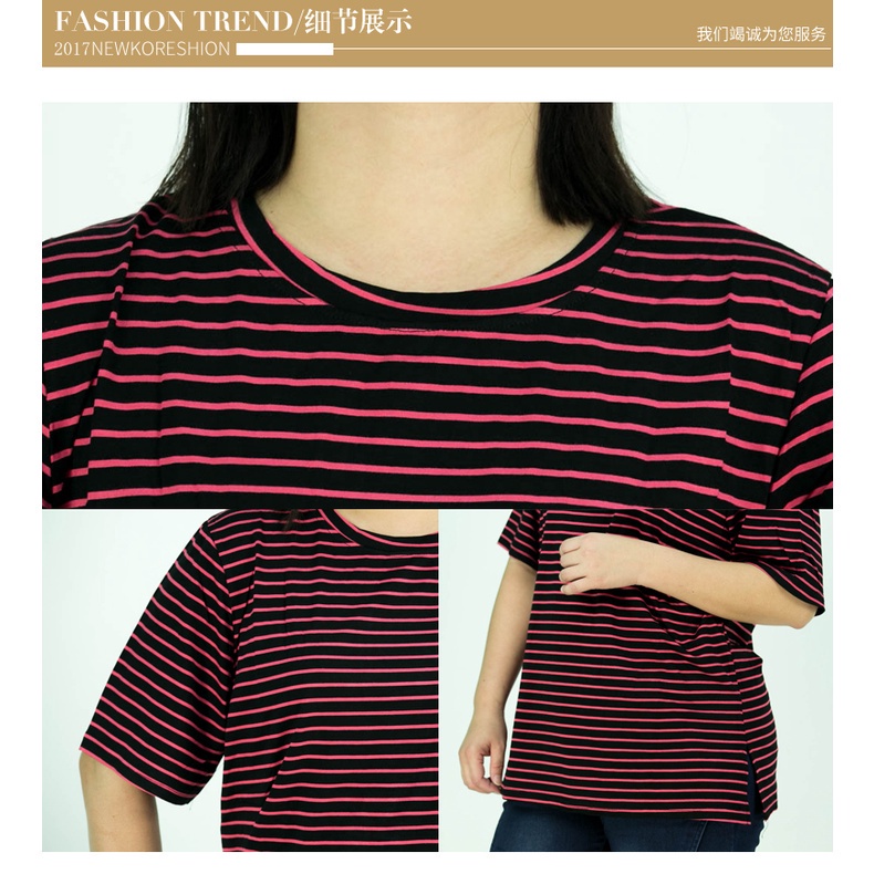 CY 4585 Plus Size Fitness Women Short Sleeve Moisture Stripe Shirts Lady Top XXL 3XL 4XL 5XL / Shirt besar Perempuan