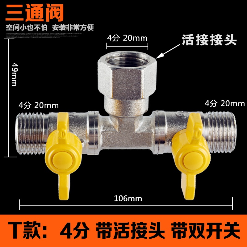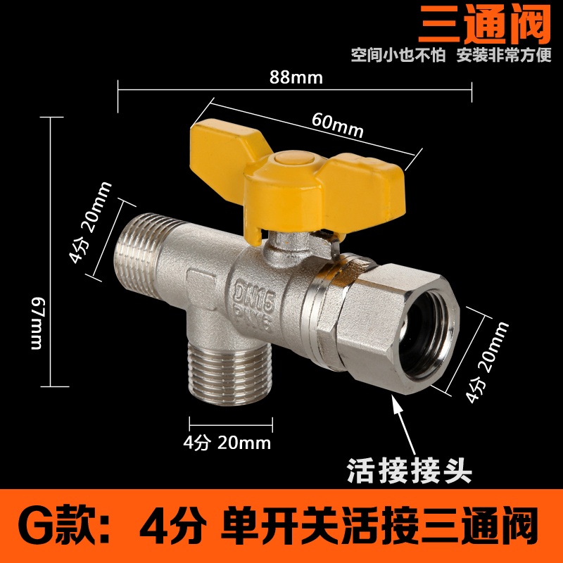 Copper Ball Valve Three-Way Angle Valve with Live Joint One-Open Double-Control Three-Way Valve One-