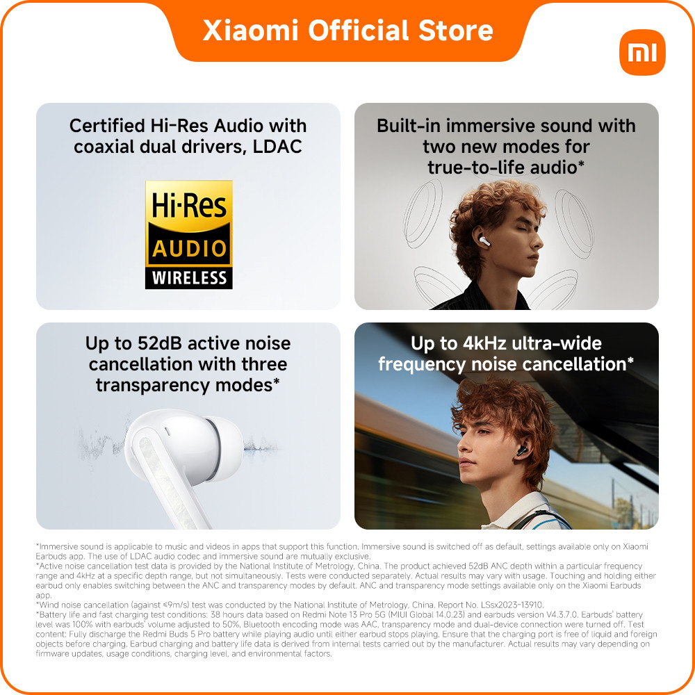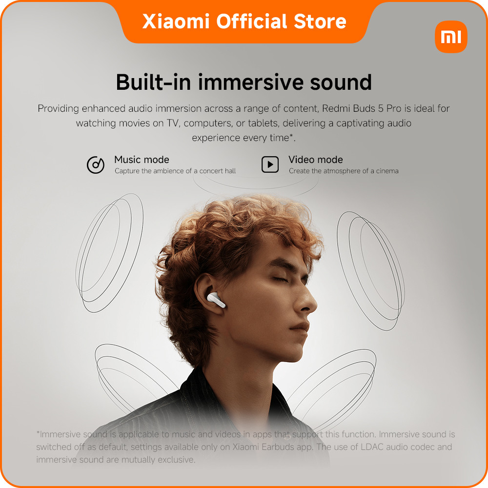 REDMI Buds 5 Pro Up to 52dB active noise cancellation/Built-in immersive sound