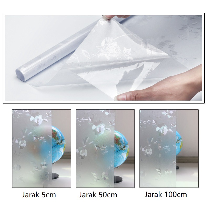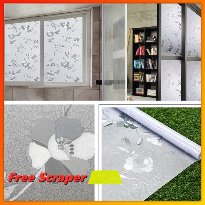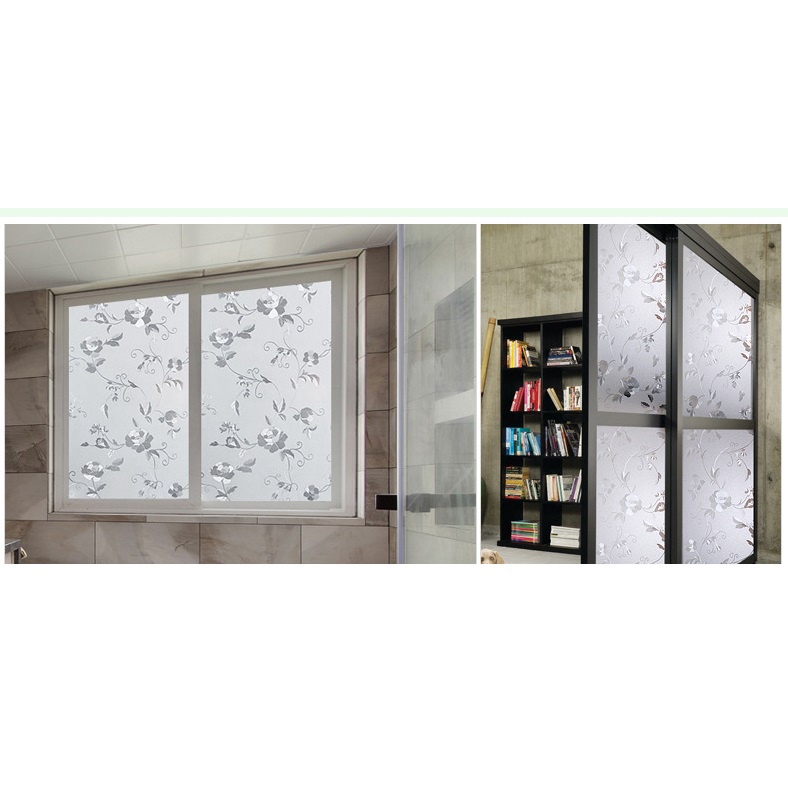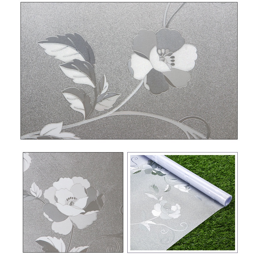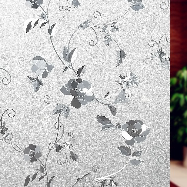 Peony Flower Pattern Frosted Glass Window Shading Film Tinted film for house window privacy tingkap sticker