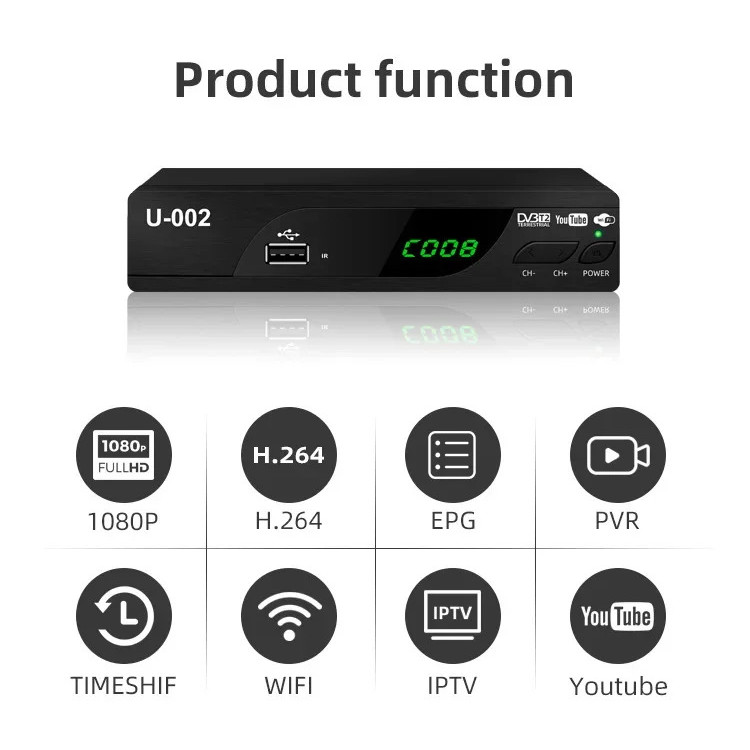 High Definition DVBT2 Digital Receiver Box for Russia Malaysia Indonesia Ground Digital TV Box H.264 Technology