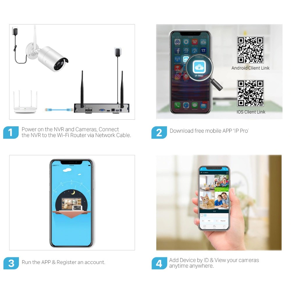 BuzzTech 8CH Wireless NVR CCTV 3MP H.265 Full HD 1296P Outdoor IP Camera DVR Kit CCTV Set 8 Channel CCTV Security 监控摄像机