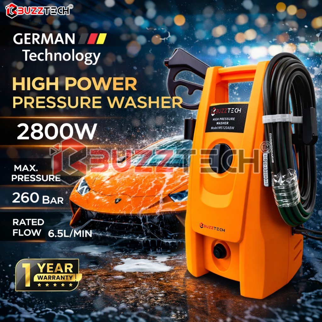 BuzzTech 2800W 260 BAR Professional Super Power High Pressure Washer Cleaner Water Jet Sprayer Cuci Car Wash 洗车器
