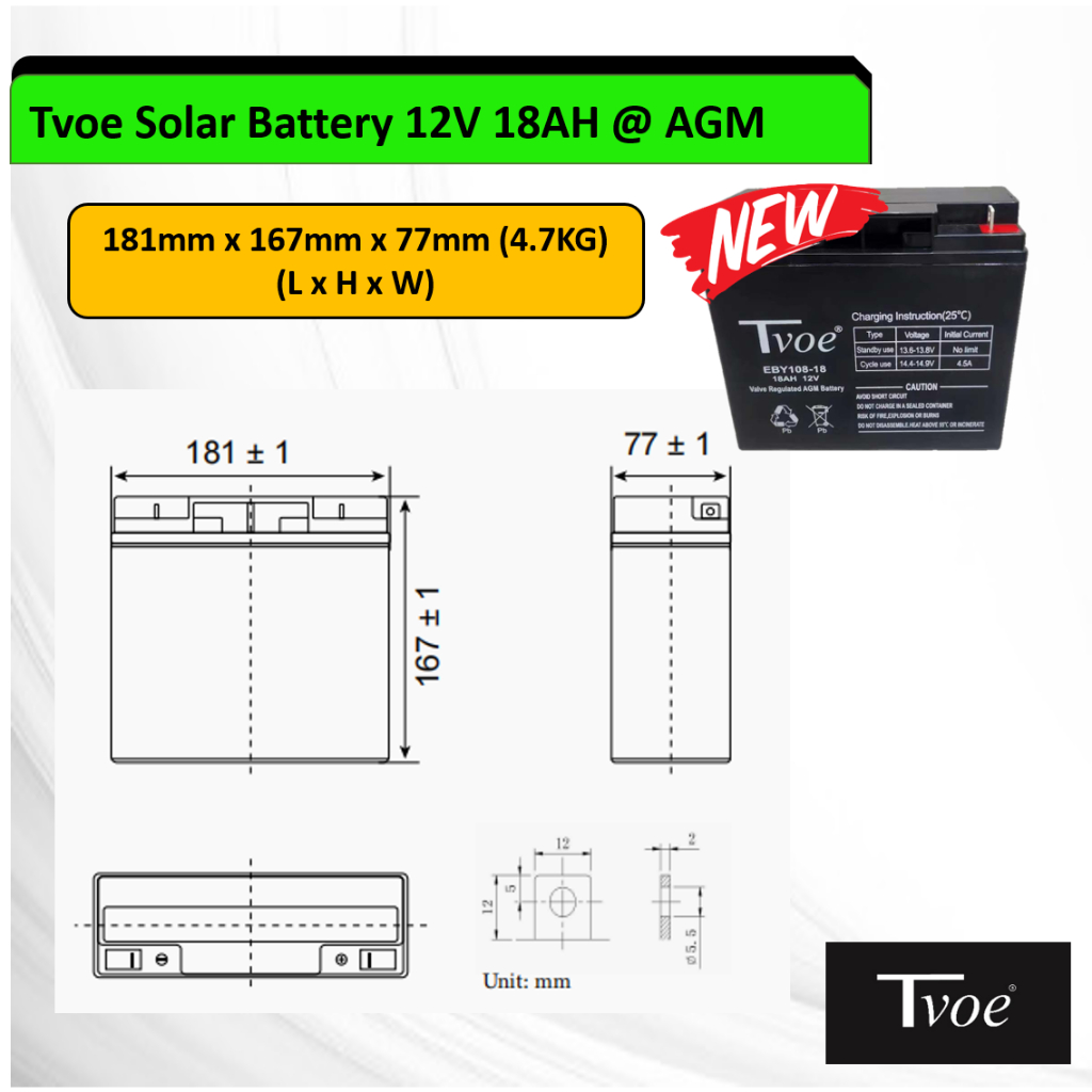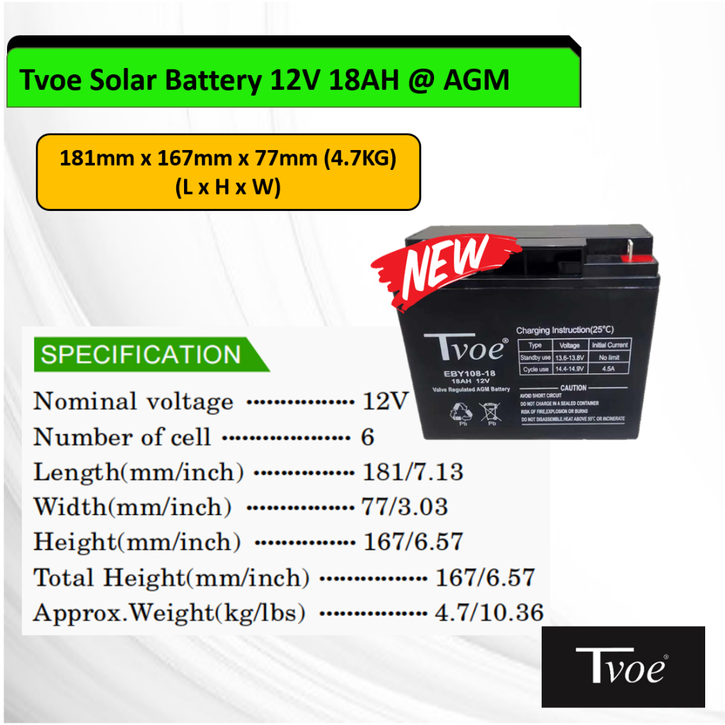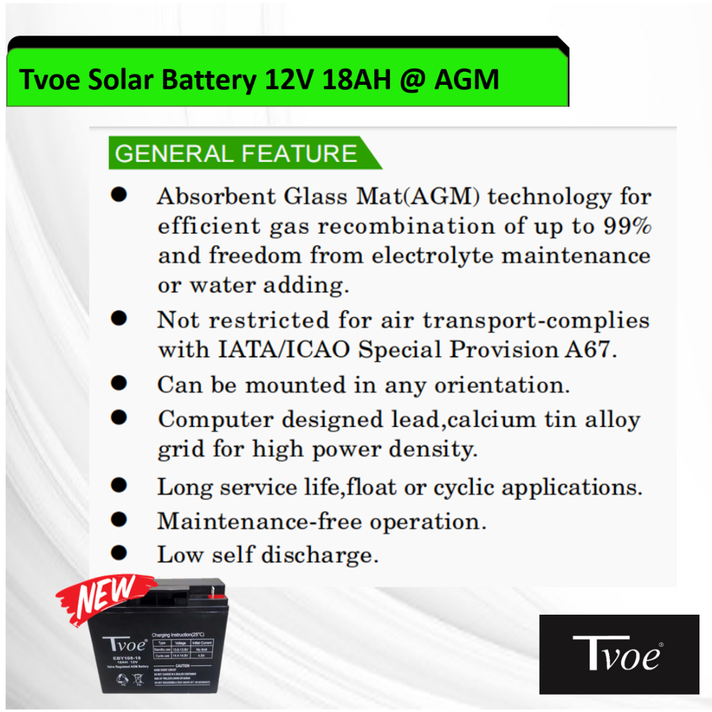 CRILIGHT Tvoe Solar Battery 12V 18AH @ AGM