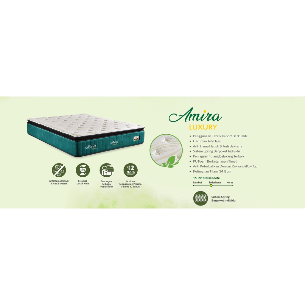 [FREE Pillow+FREE Delivery] Orthorest Klasik 13.5" Inch Amira Luxury Tilam Pocket Spring Muslim Mattress Only