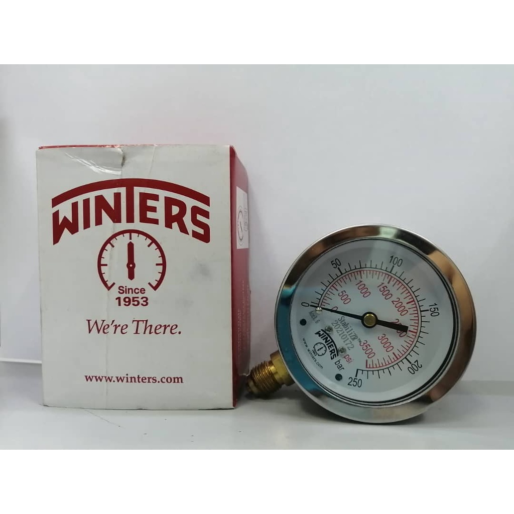 [Winters] Pressure Gauge, 10Bar ~ 400Bar, Diameter 2" 1/2 @ 63mm, 1/4" BSP Bottom, Semi Stainless steel